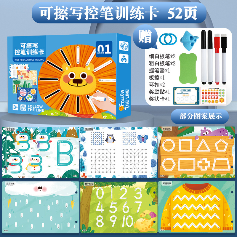 3-stage pen control training + free 10-piece set size 22*14.5 * 5.3cm weight 0.35kg packing number 60 sets per box packing size 55.5*45 * 46cm