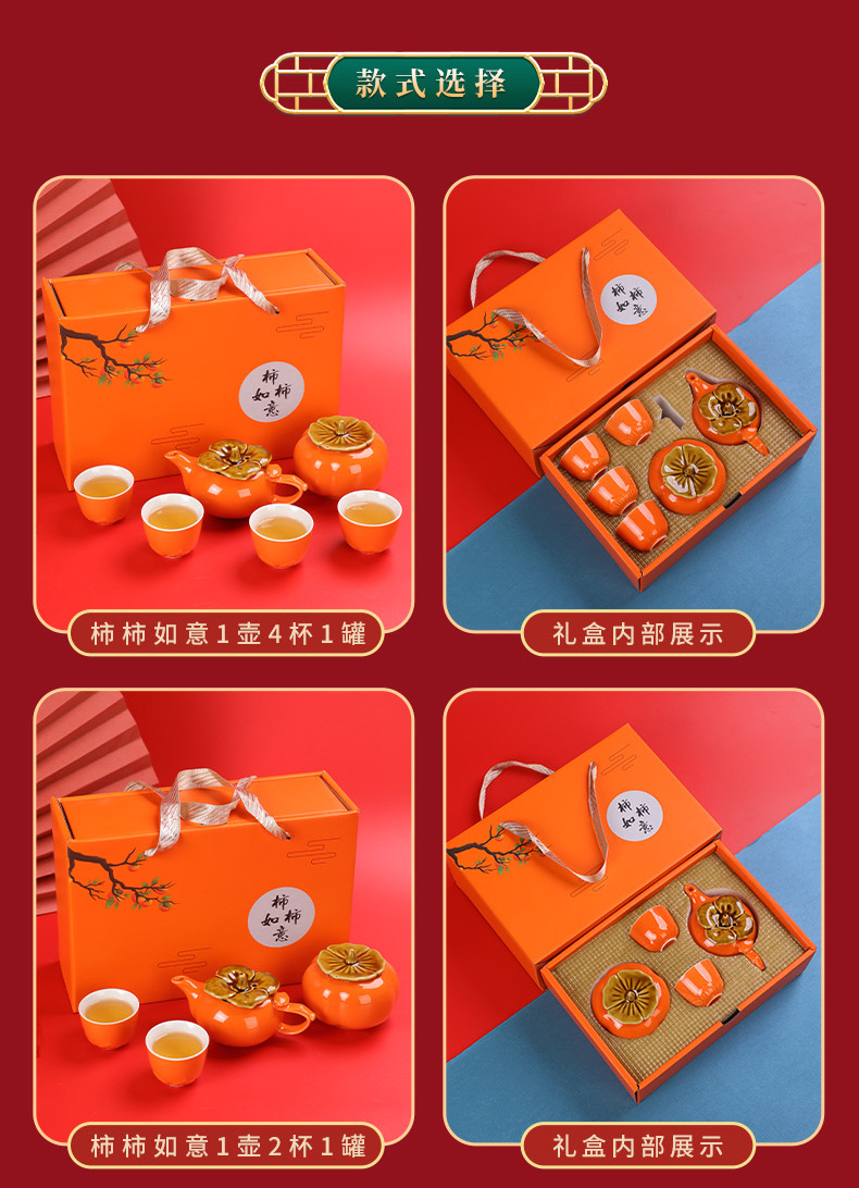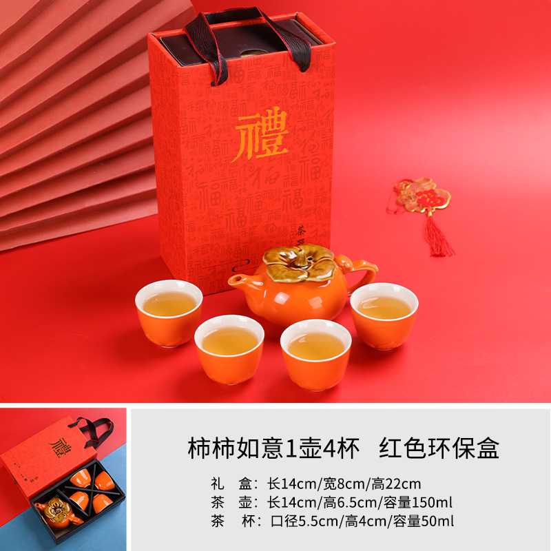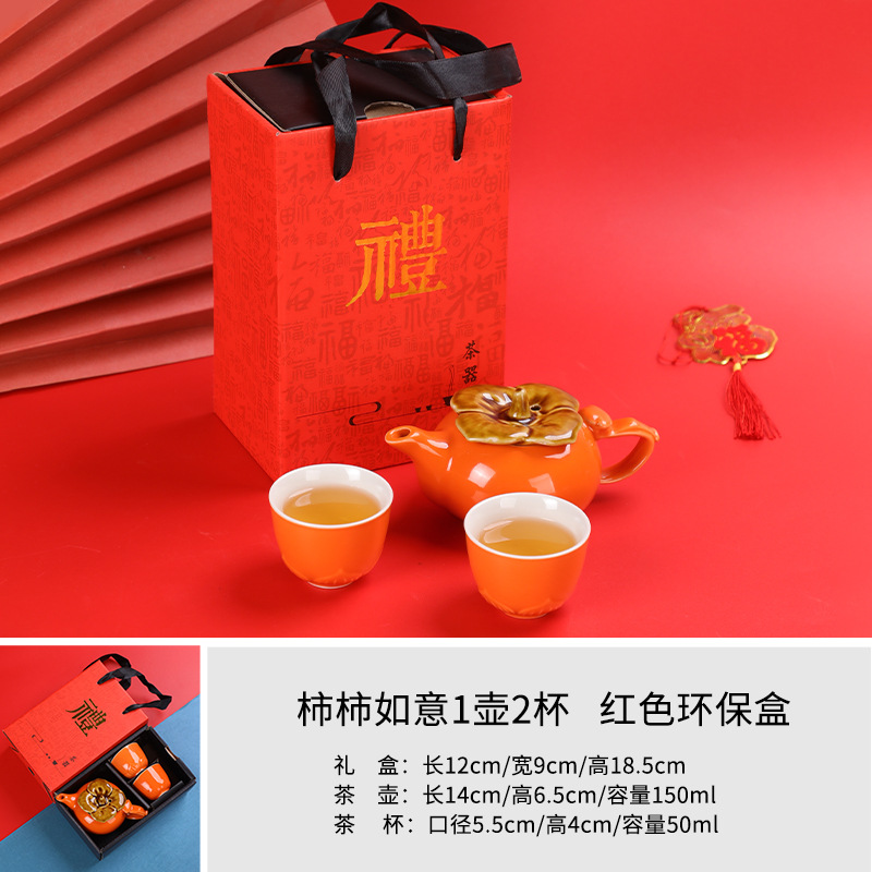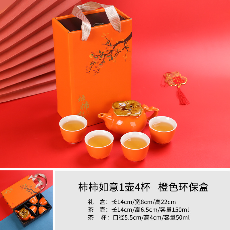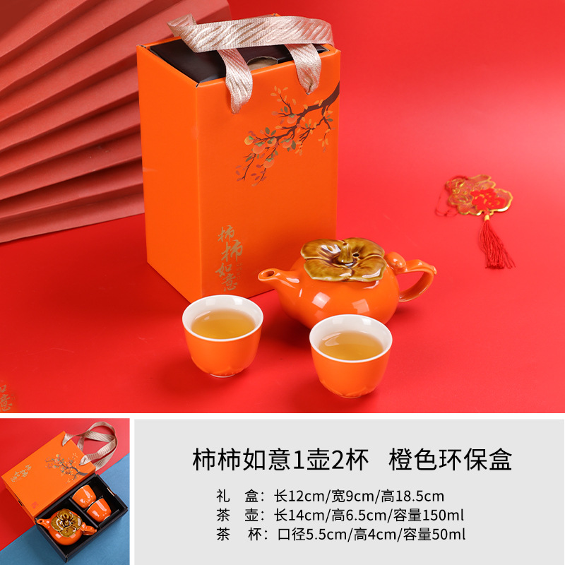 lucky persimmon 1 pot 2 cups 1 can-orange gift box