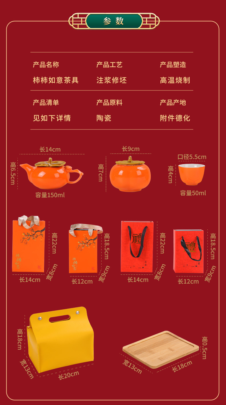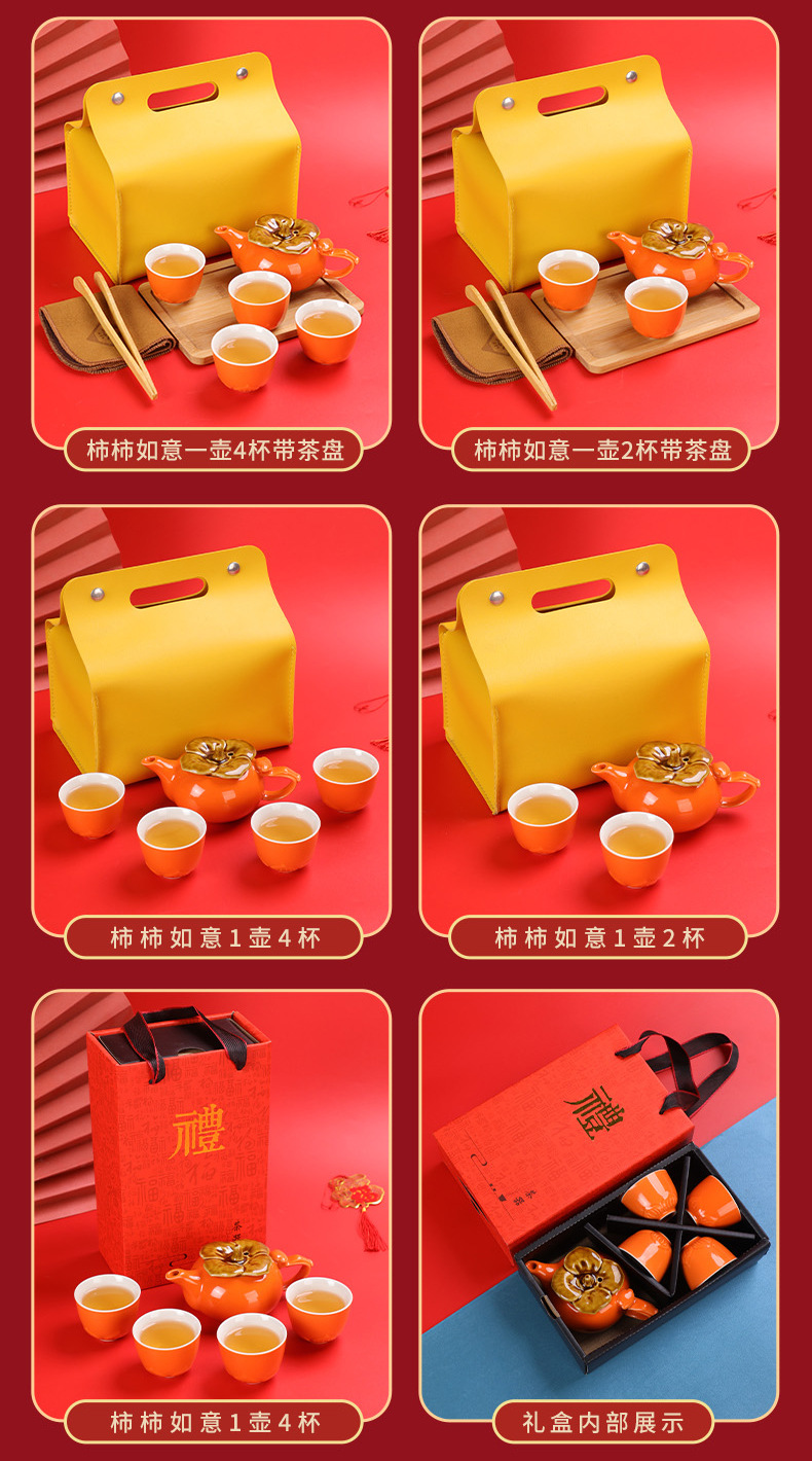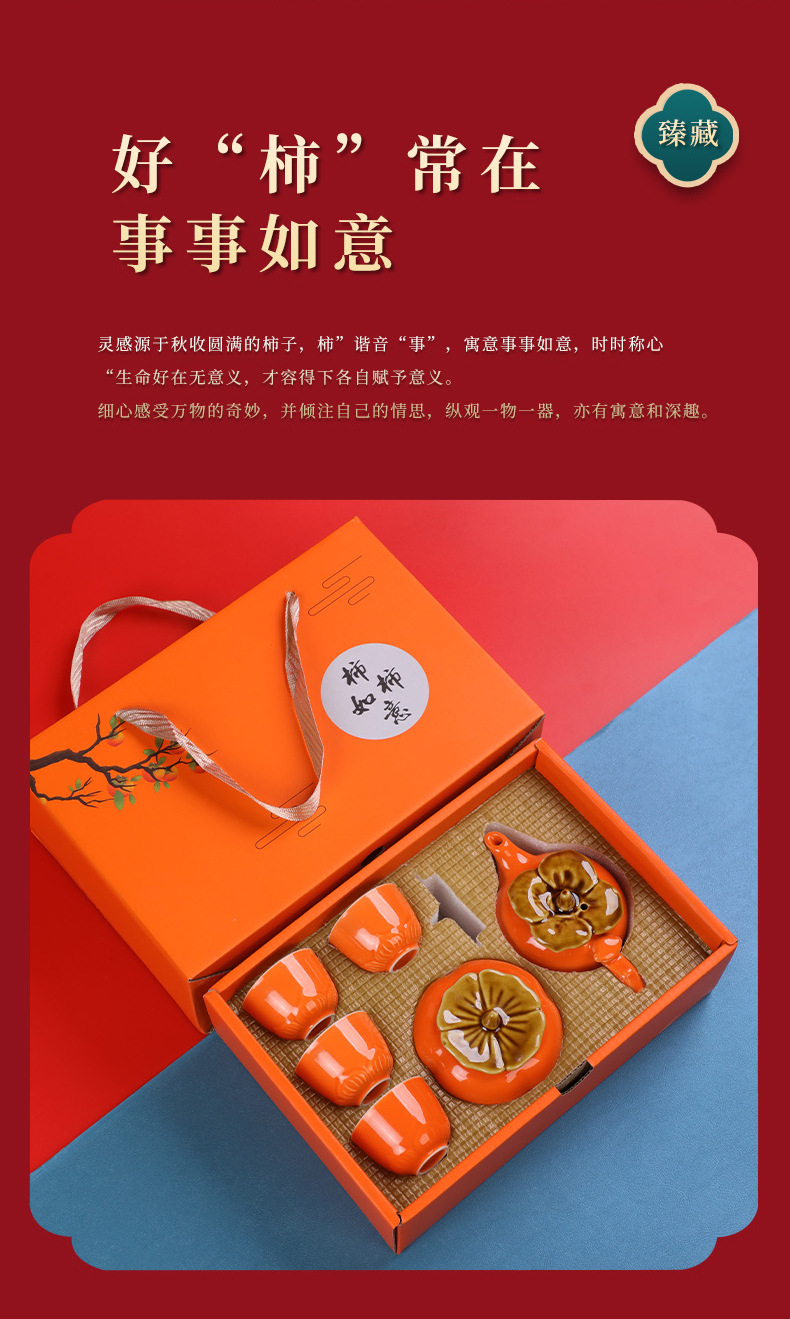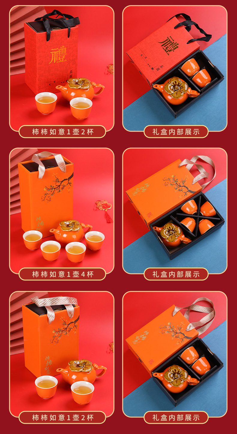 lucky persimmon 1 pot 2 cups 1 can-orange gift box
