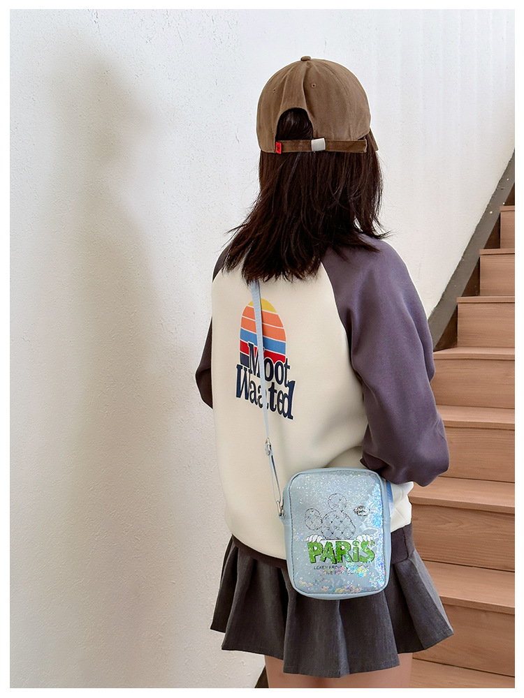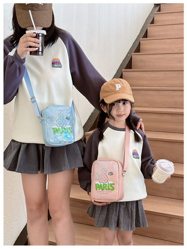 new children's bags glossy fashion boys girl's crossbody bag super cool shoulder bag simple letter coin purse