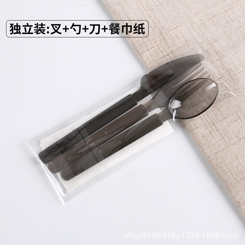 black knife + black fork + one tissue