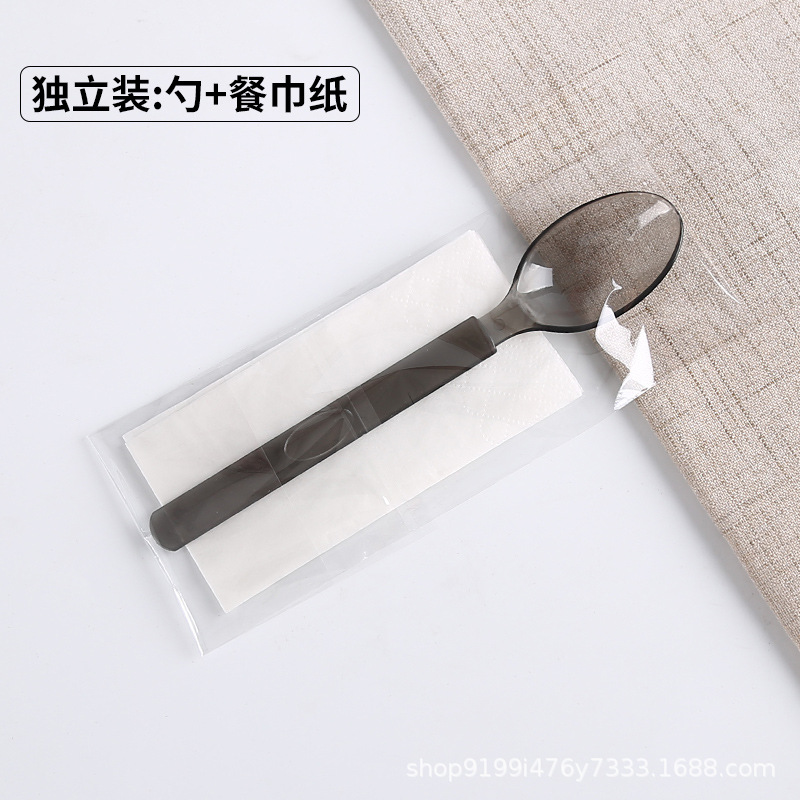 one black spoon is individually packaged
