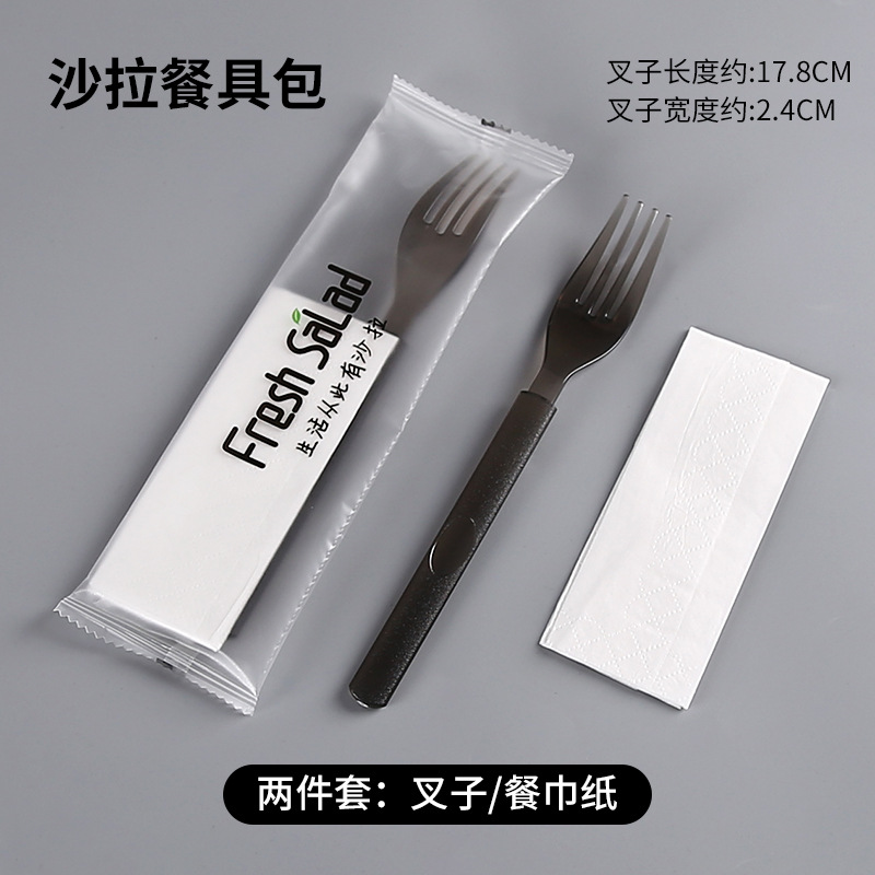 black fork + tissue (salad lunch bag)