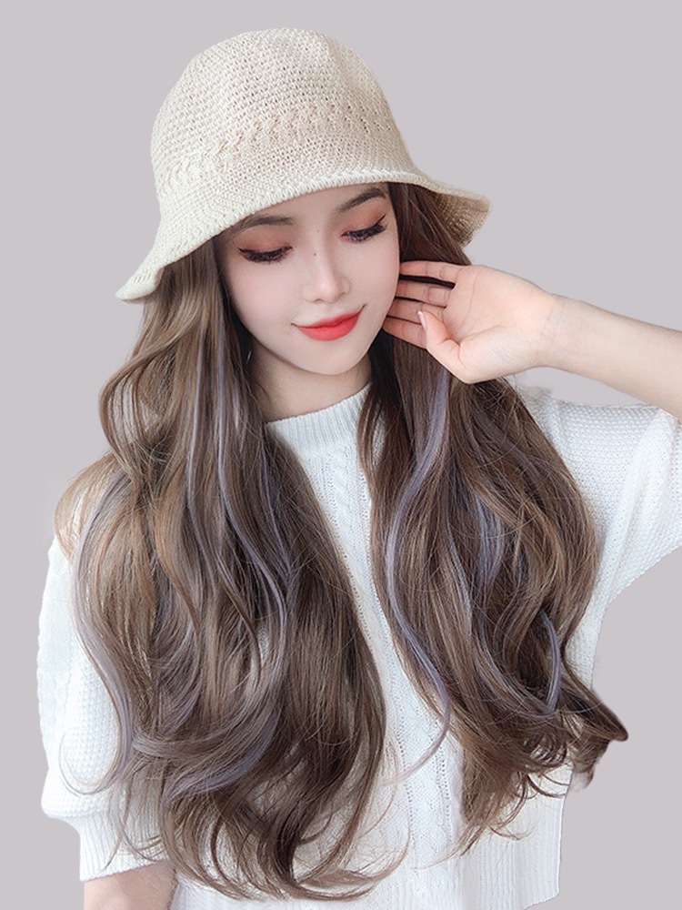 beige mesh bucket hat + light brown inner buckle mid-length straight hair