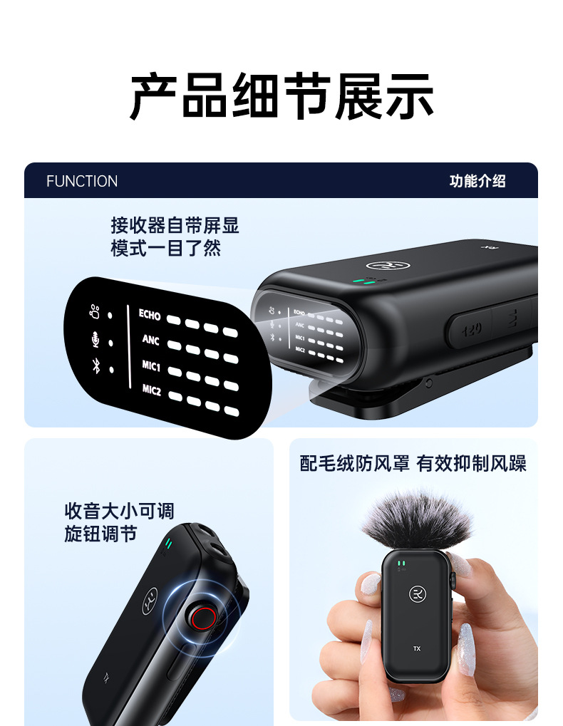 [compatible with one drag and one] double microphone radio +4 gear adjustment noise reduction +48h battery life