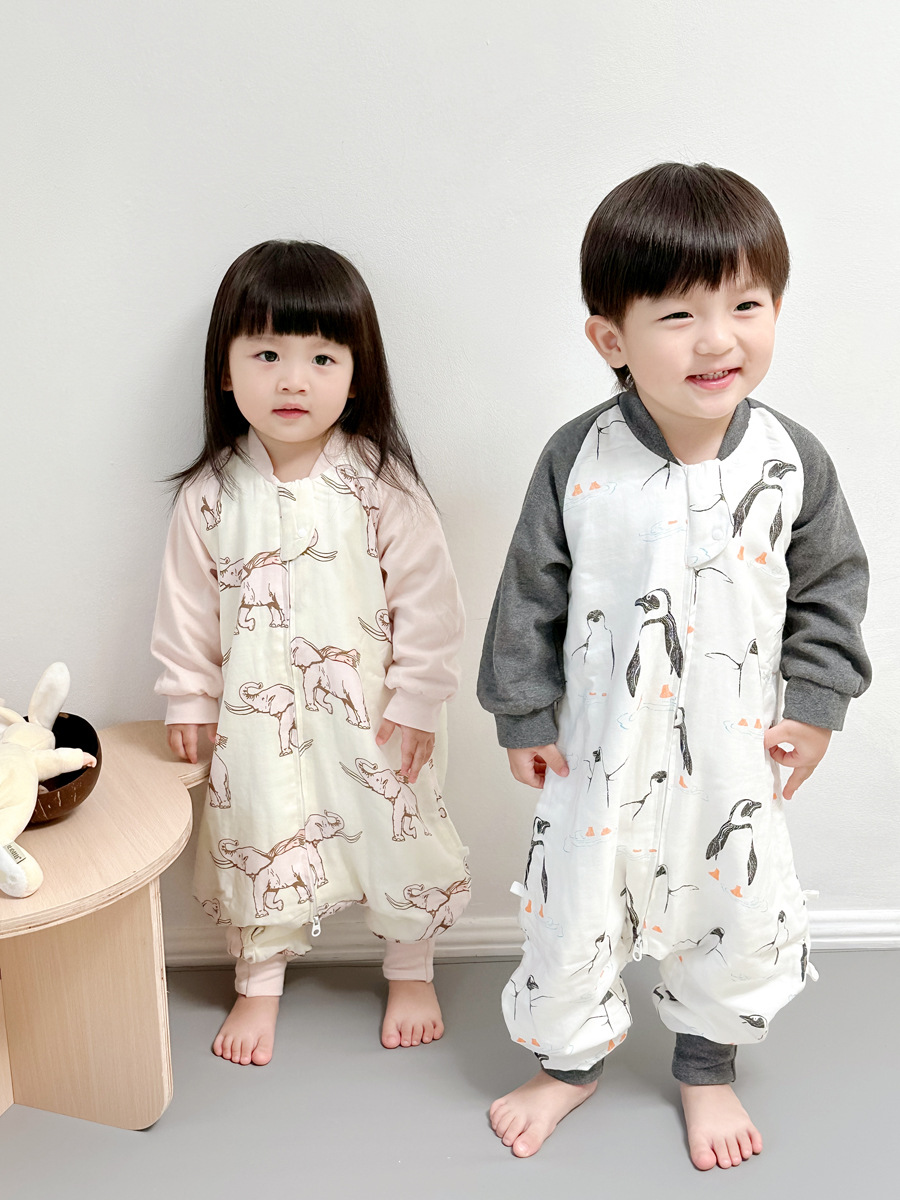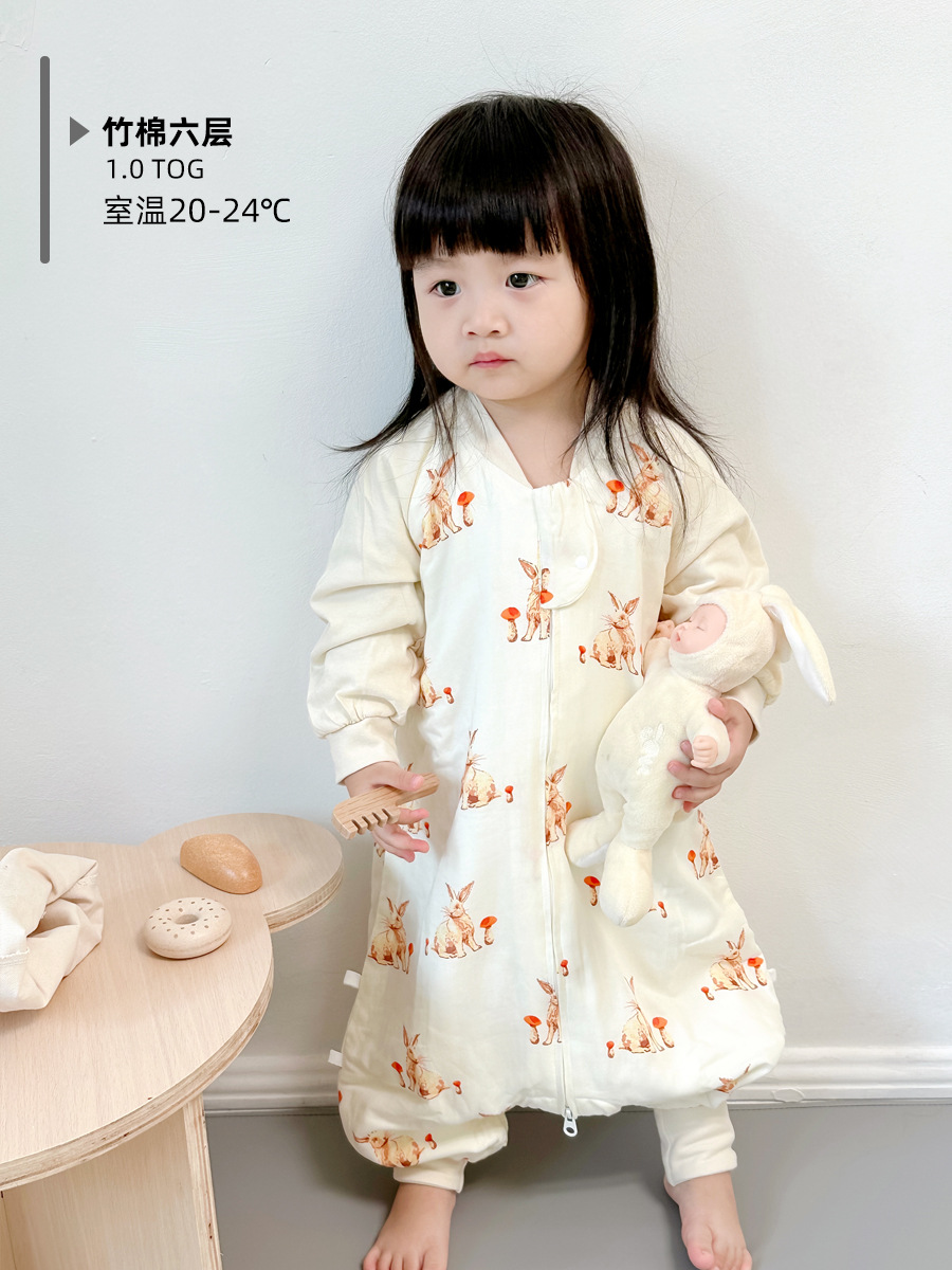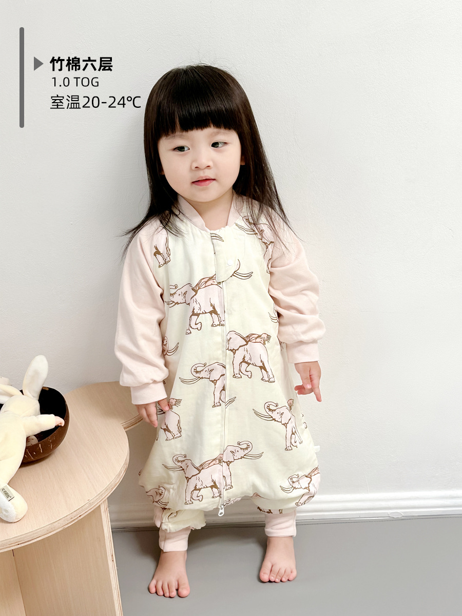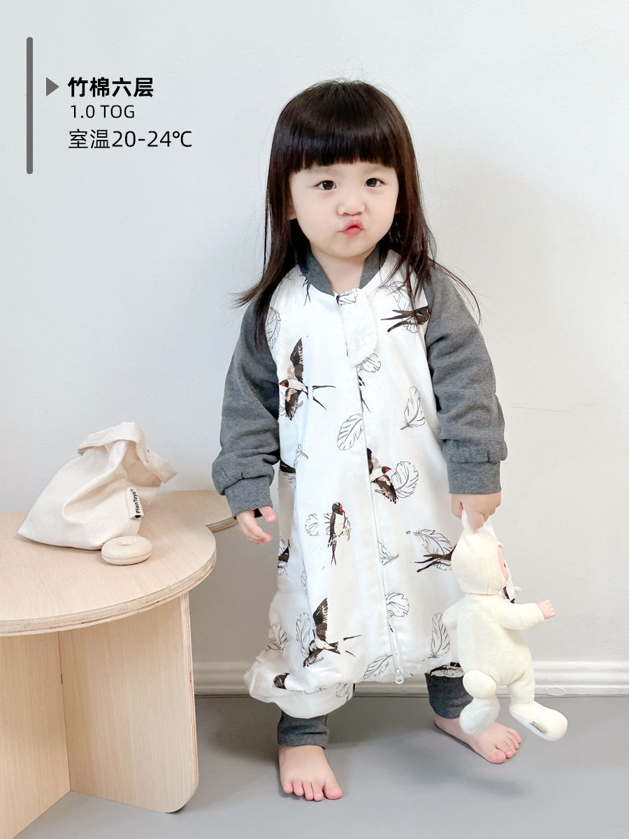 Six-Layer Bamboo Cotton Gauze Baby Sleeping Bag Autumn and Winter Baby Footed to Prevent from Being Kicked off Four Seasons Universal Children Sleeping Bag Spring and Autumn
