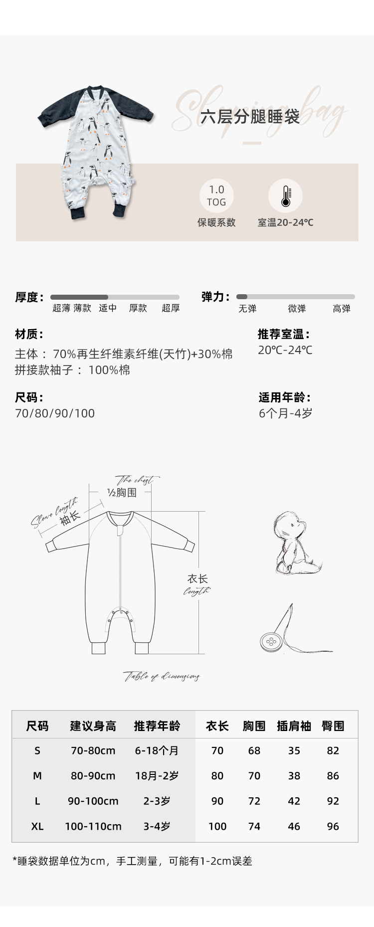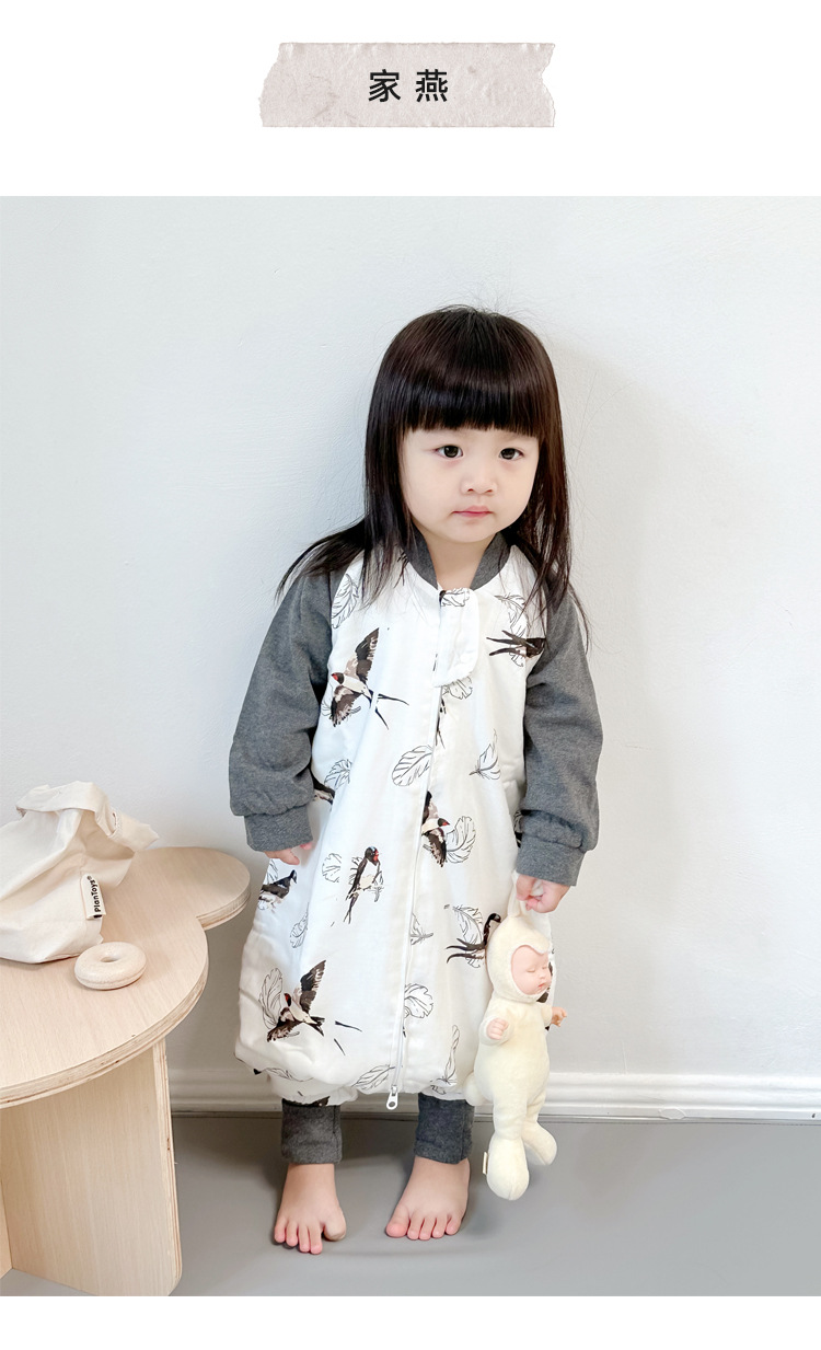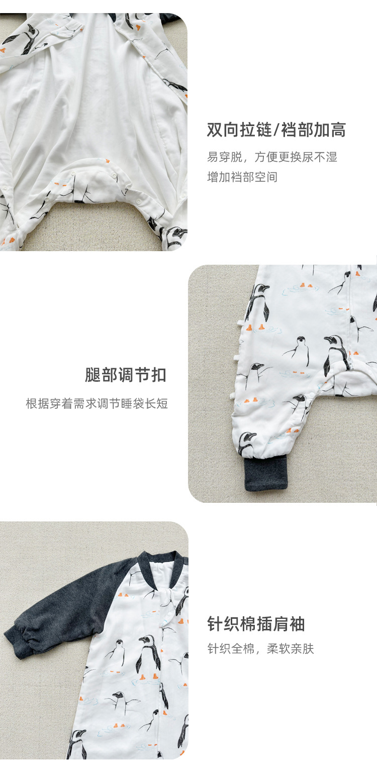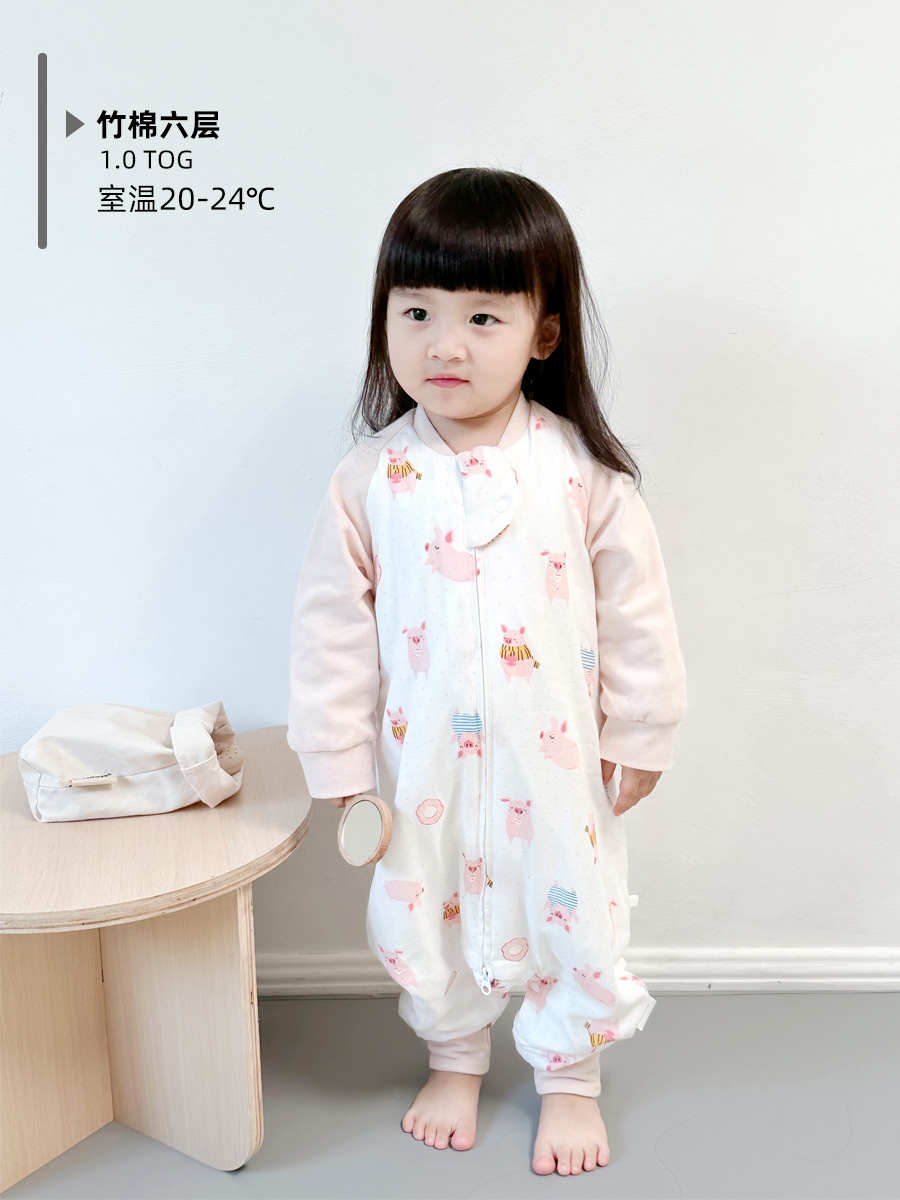 Six-Layer Bamboo Cotton Gauze Baby Sleeping Bag Autumn and Winter Baby Footed to Prevent from Being Kicked off Four Seasons Universal Children Sleeping Bag Spring and Autumn