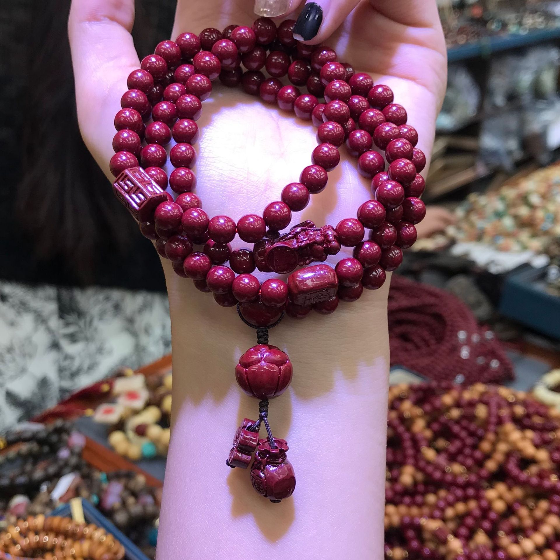about 6mm cinnabar multi-wrap bracelet