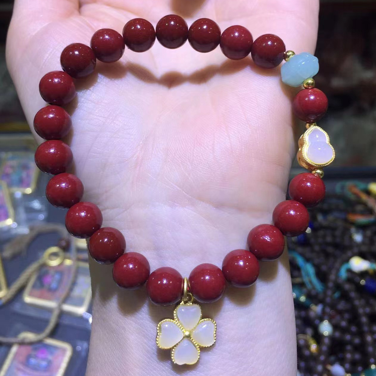 about 8mm cinnabar bracelet four-leaf clover