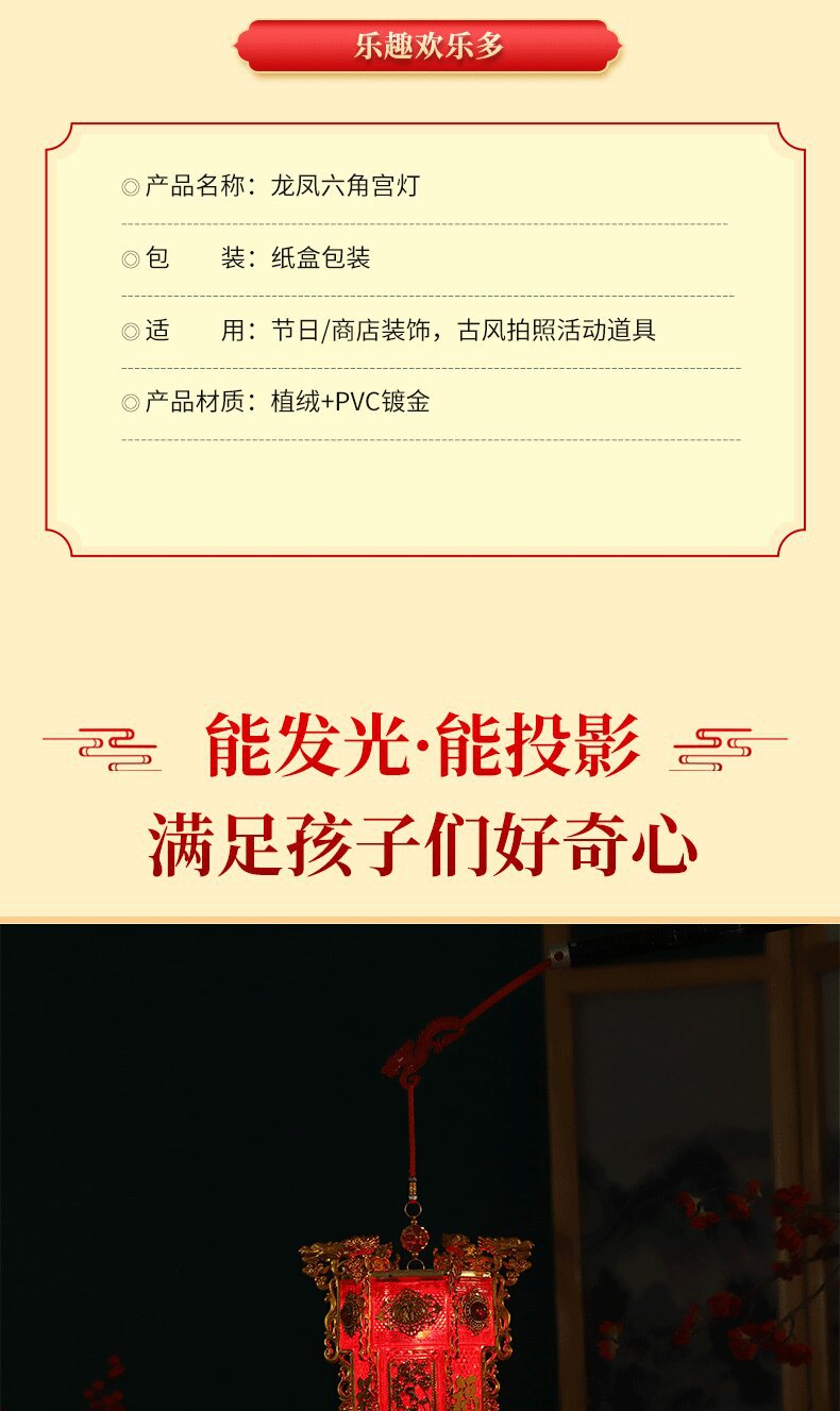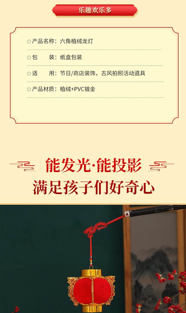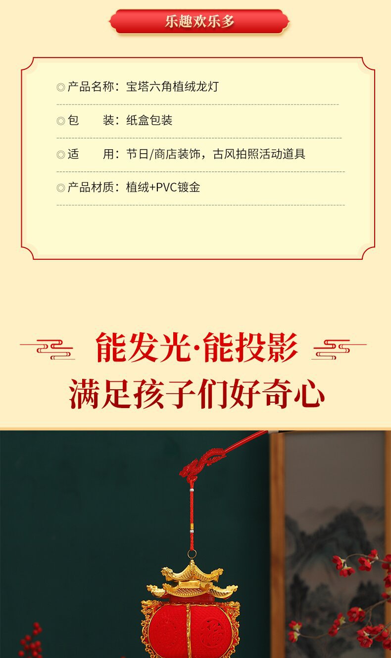 hexagonal flocking dragon lantern with tower top (battery free)
