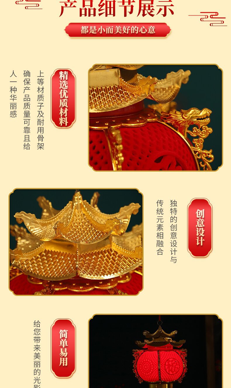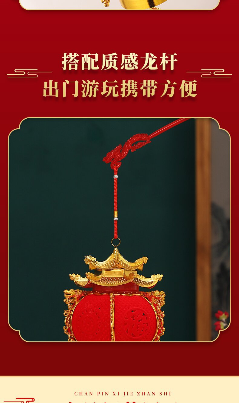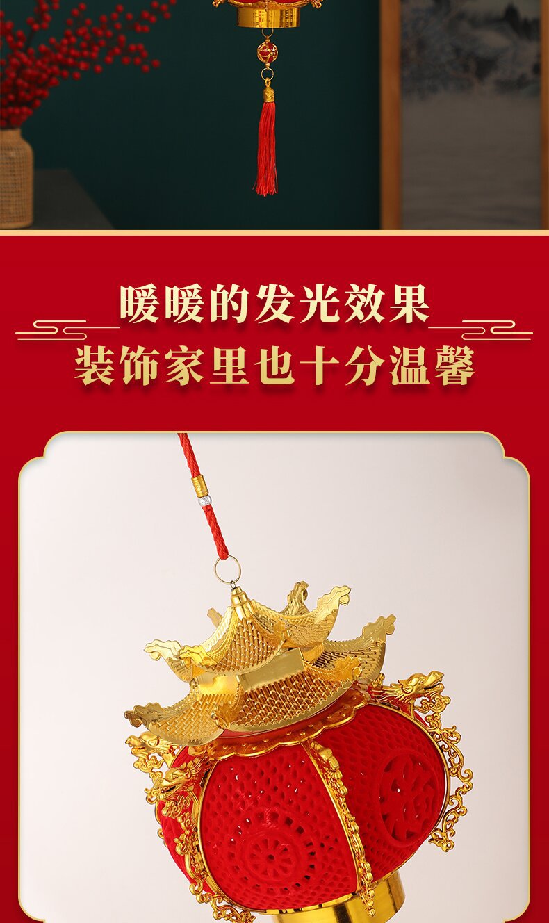hexagonal flocking dragon lantern with tower top (battery free)