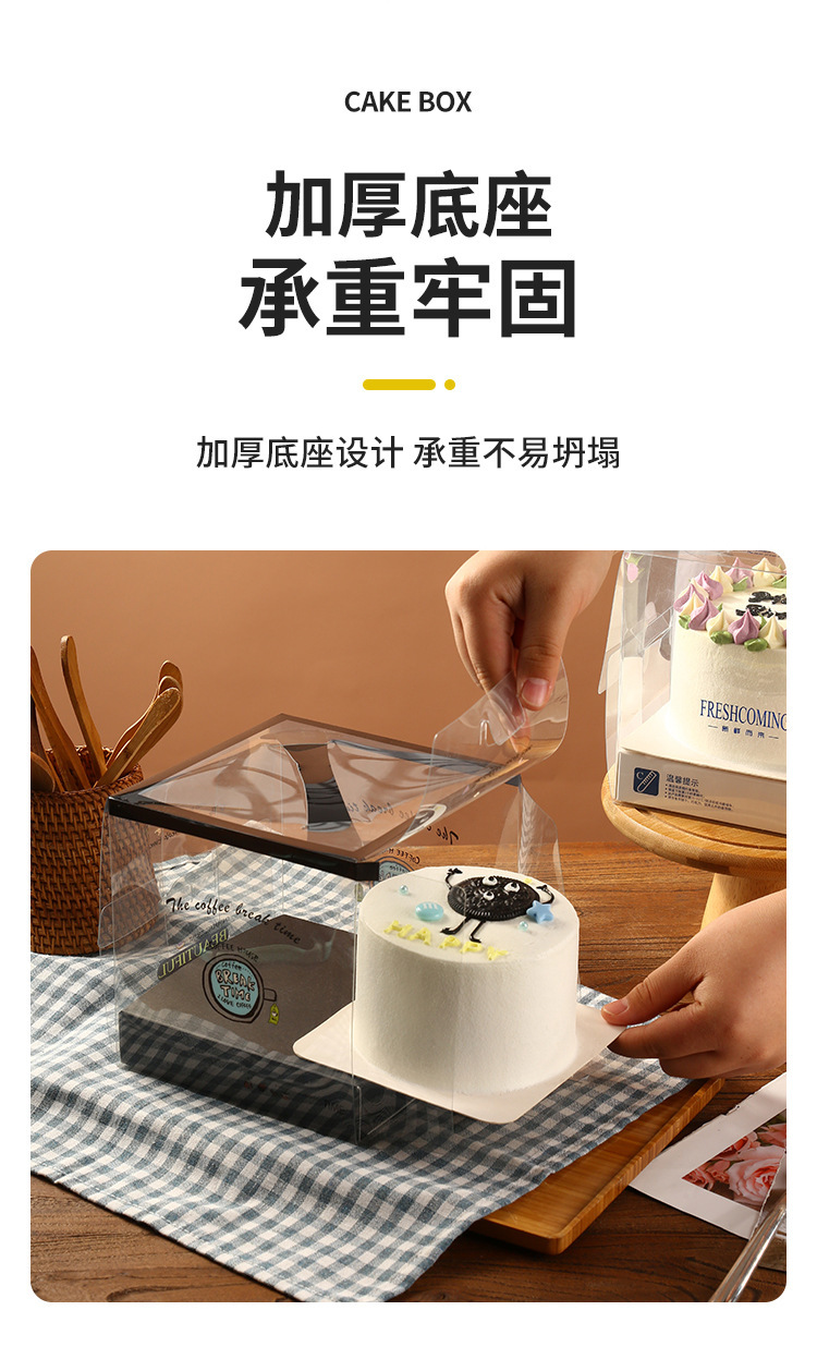 Transparent 4/5 Inch plus Cake Box Ins Style Mousse Pastry Dessert High Packing Box Square Baking Packaging Box