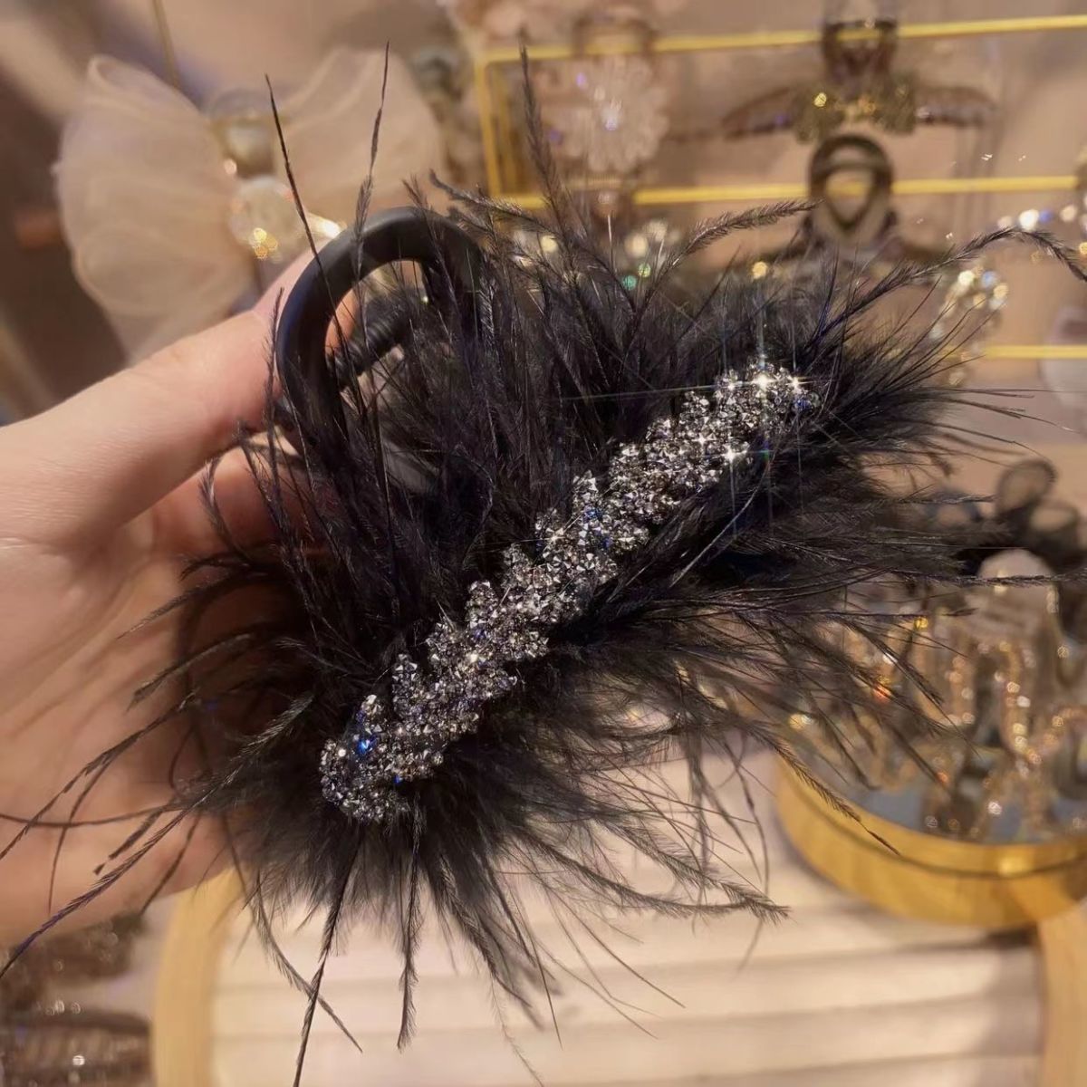 rhinestone feather [black] 13cm