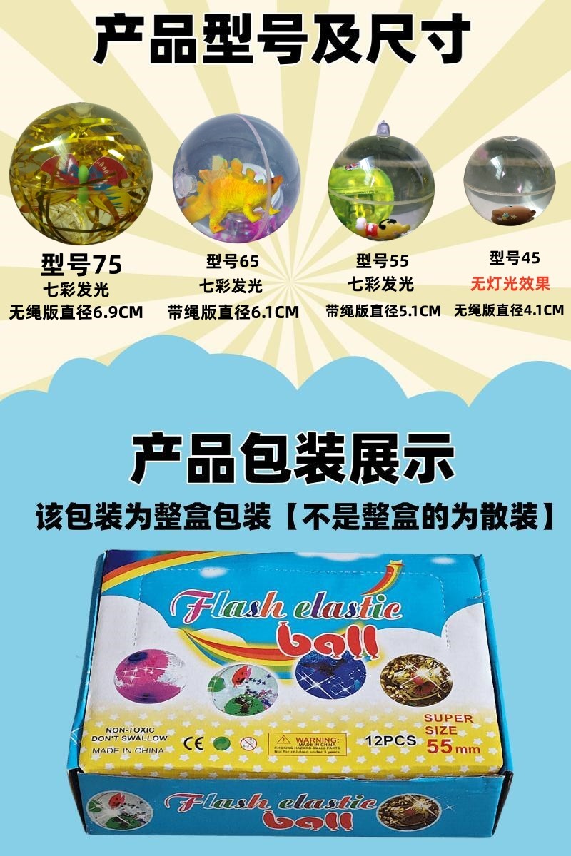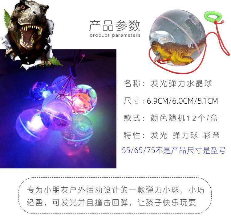new dinosaur elastic ball bouncing toy ball flash luminous jumping ball large luminous ball crystal ball water ball