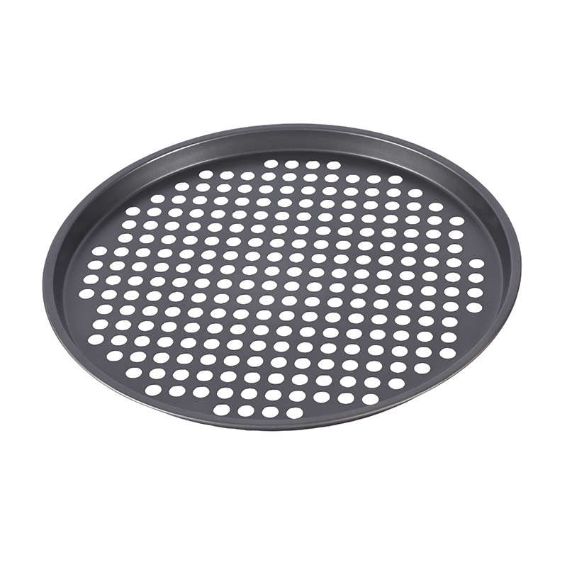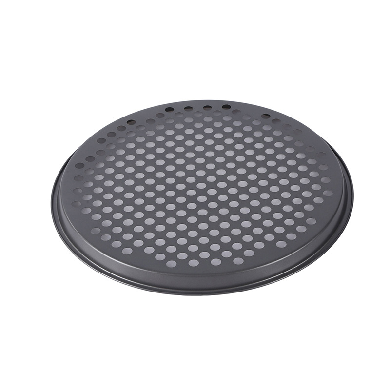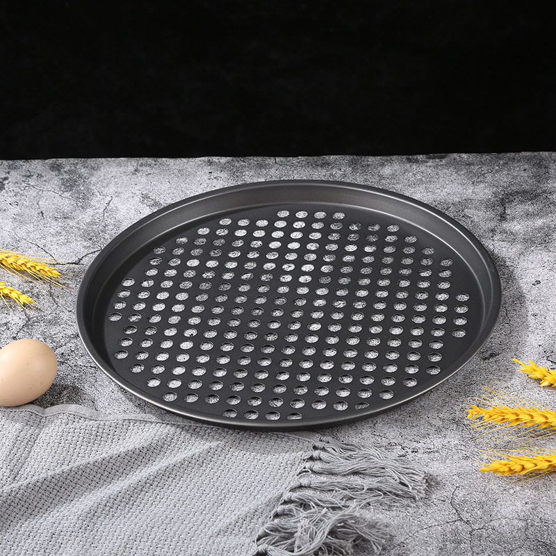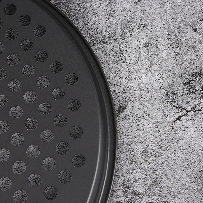 household punching pizza plate non-stick carbon steel baking tool pizza plate punching baking plate solid bottom pizza plate wholesale