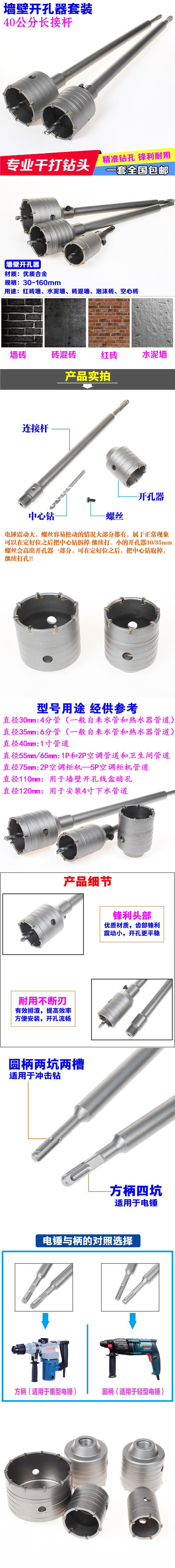 Electric Hammer Wall Drill Set Concrete Reamer Installation Air Conditioning Pipe Punching Hollow Boring Bit