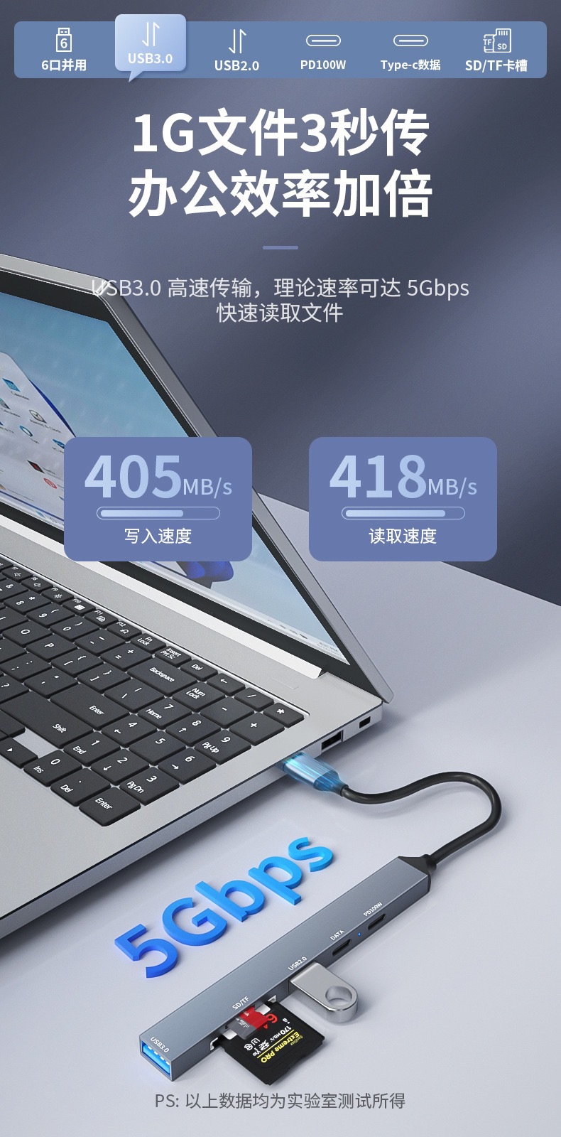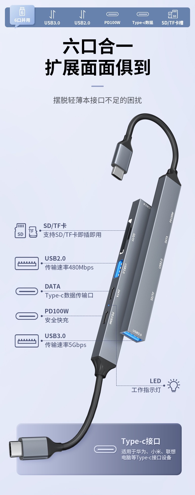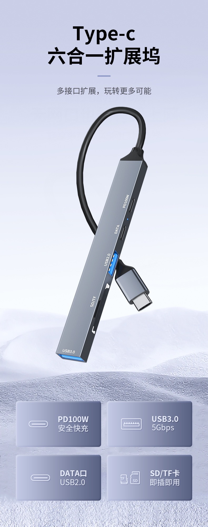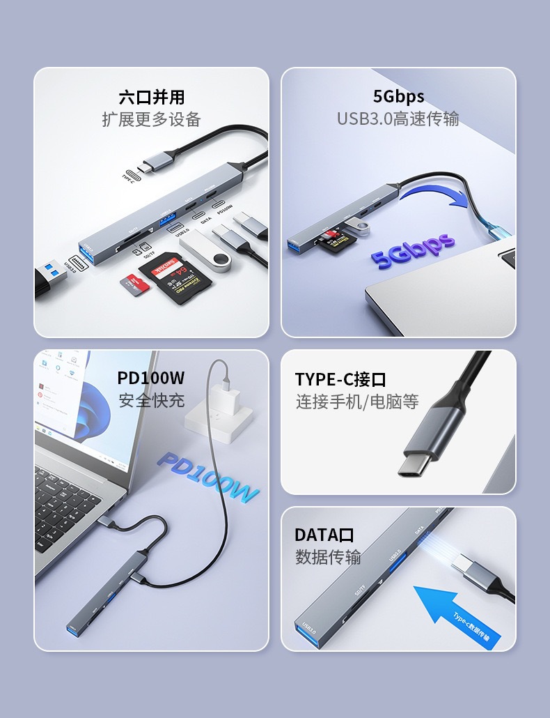 Cross-Border Hot Selling Type-C Docking Station Six-in-One USB Extender for MacBook Apple Expansion Dock