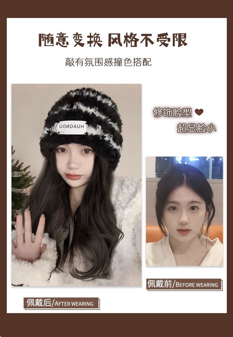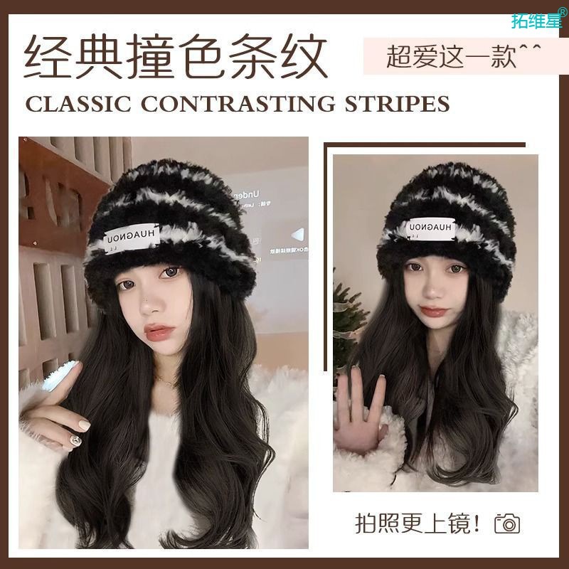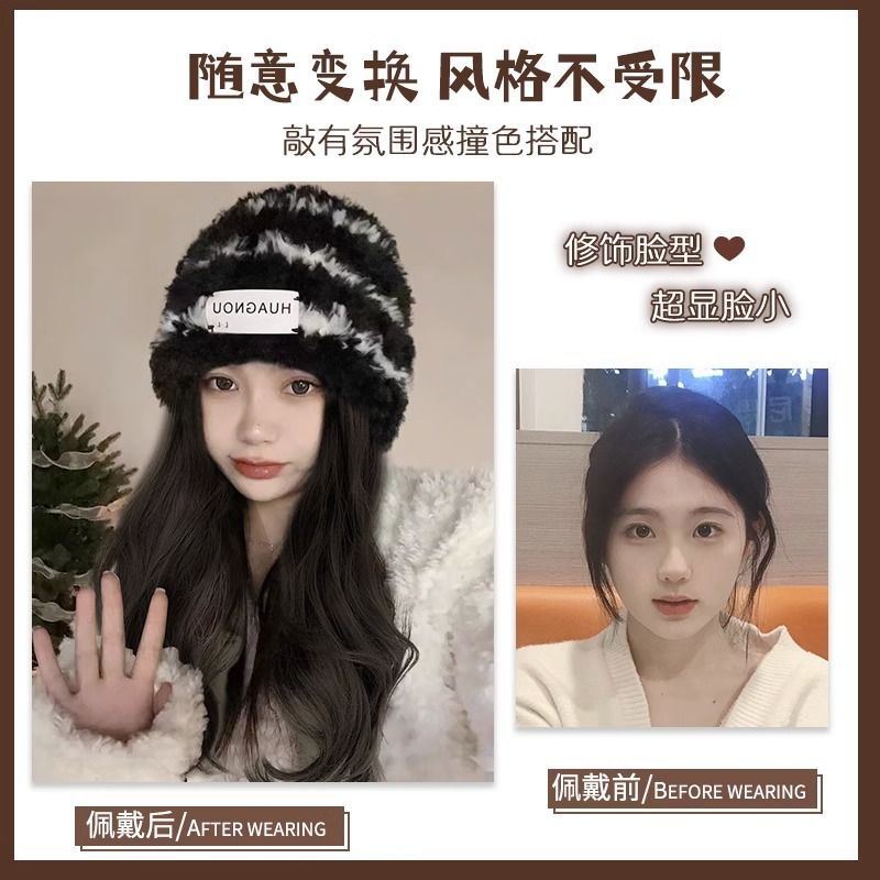 black and white striped hat [brown black] + care suit new upgrade hair