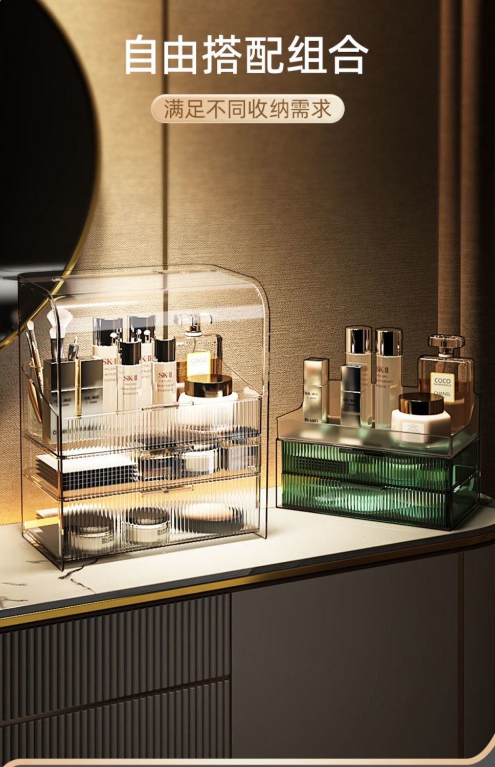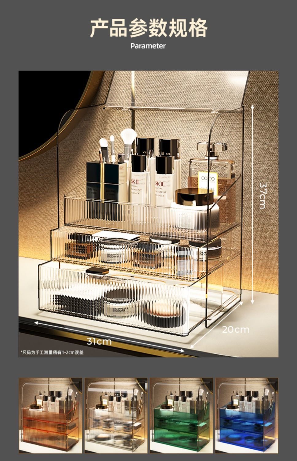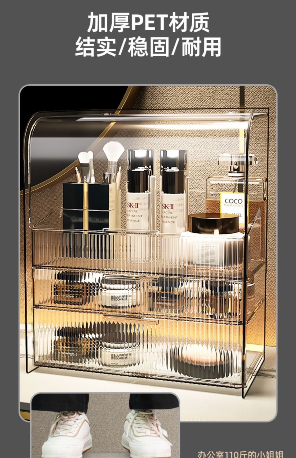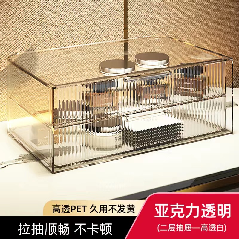 transparent double layer drawer box + tray
