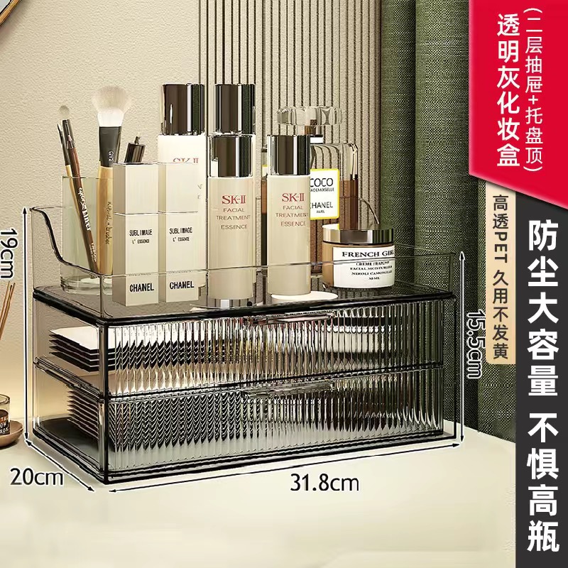 transparent gray double layer drawer box + tray