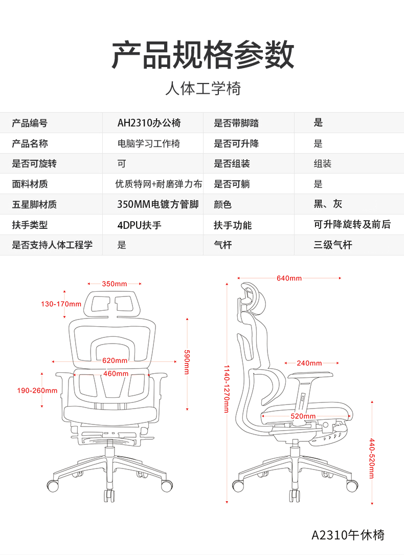 ah2310c gray (can lie 150 °)