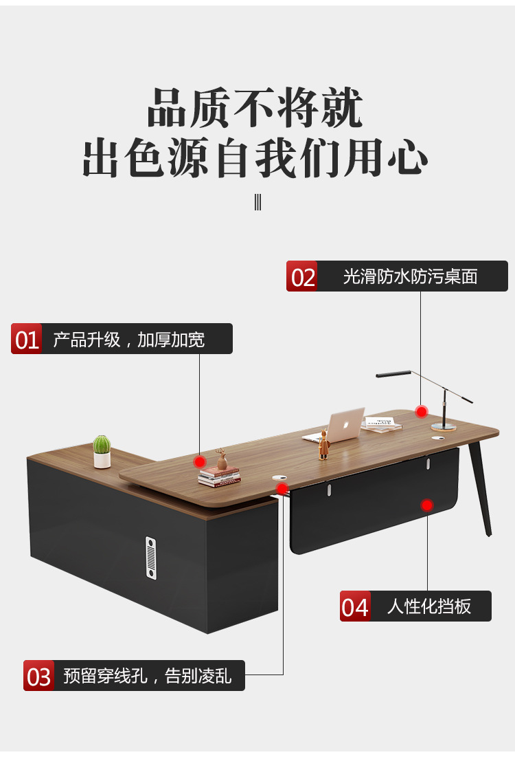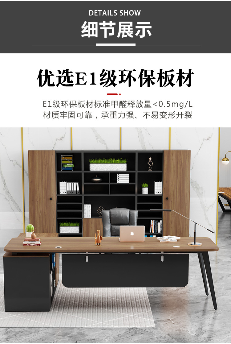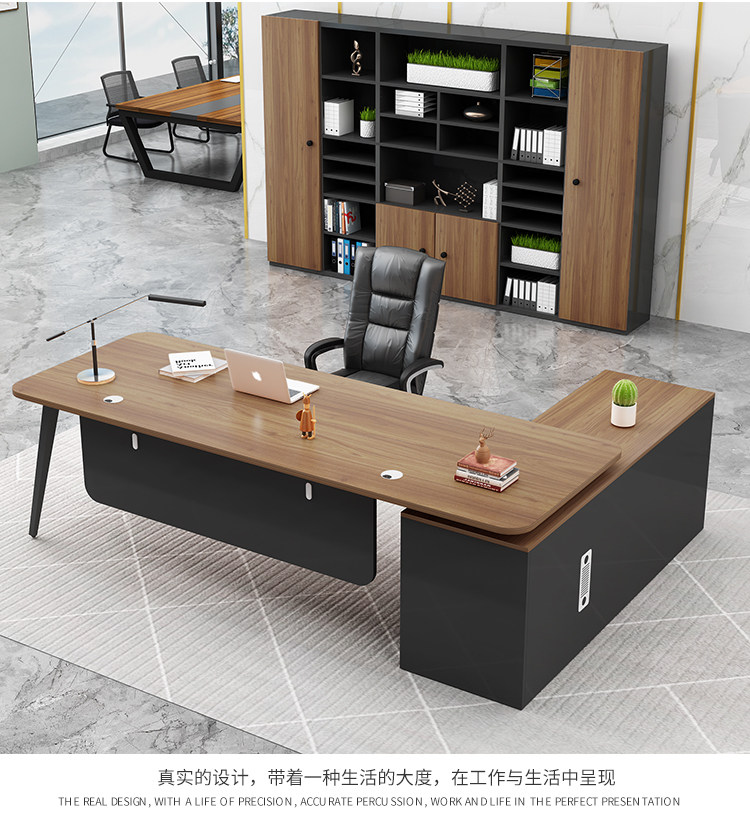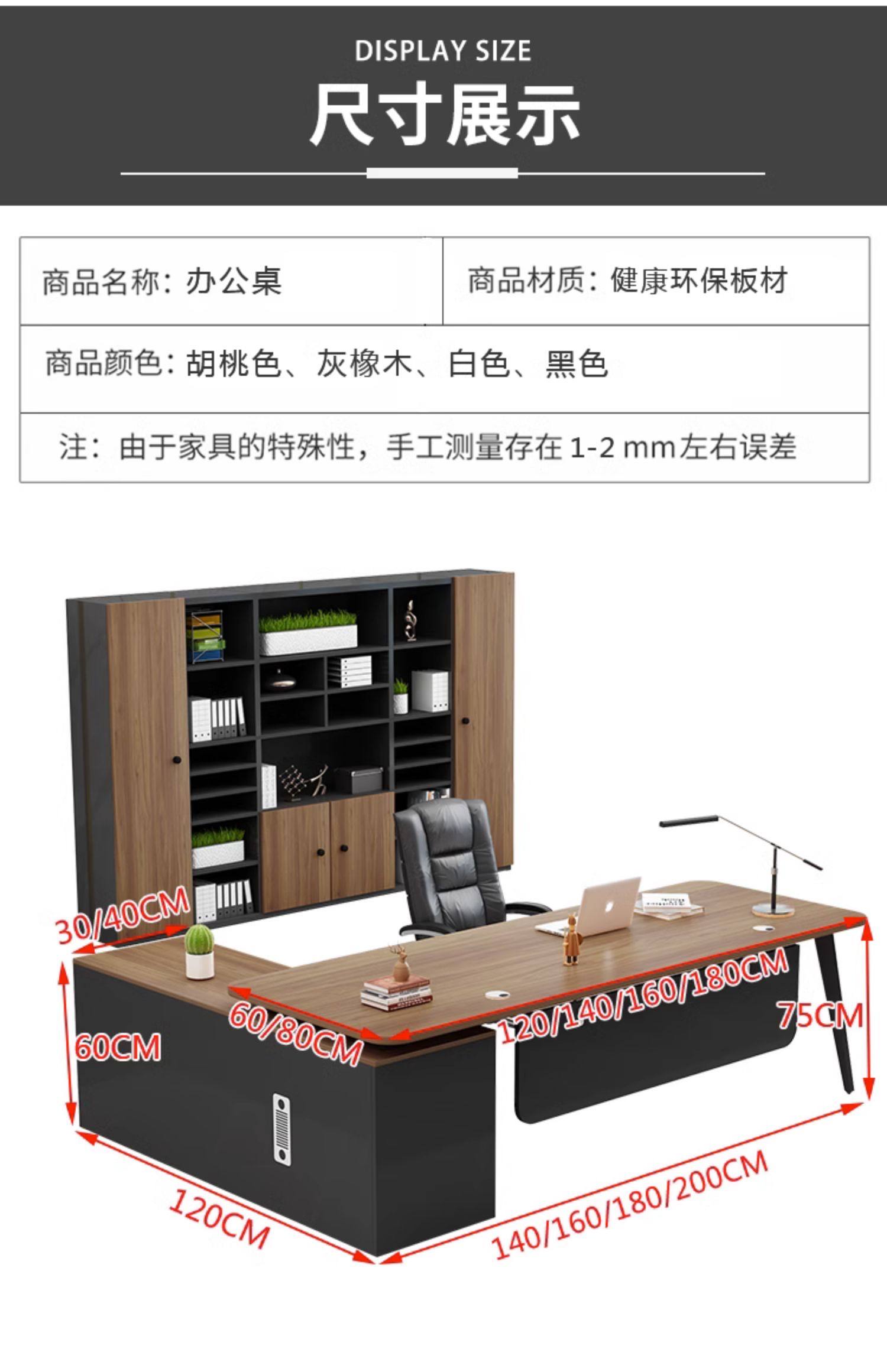 fashion office desk walnut + side cabinet 180*80 * 75cm