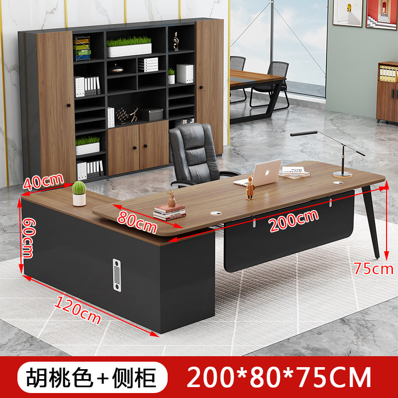 fashion office desk walnut + side cabinet 200*80 * 75cm