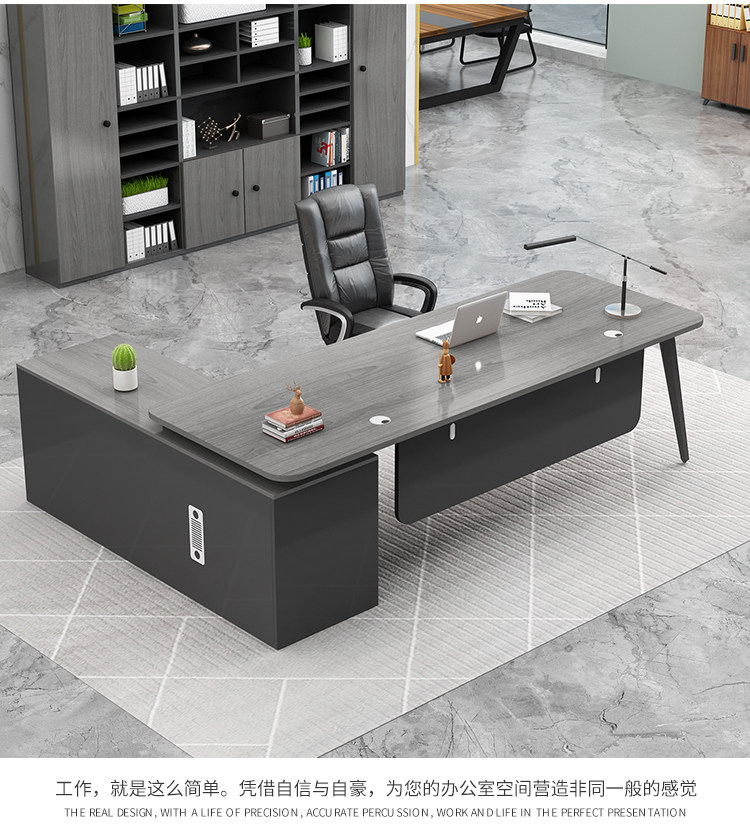 fashion office desk gray oak + side cabinet 180*80 * 75cm