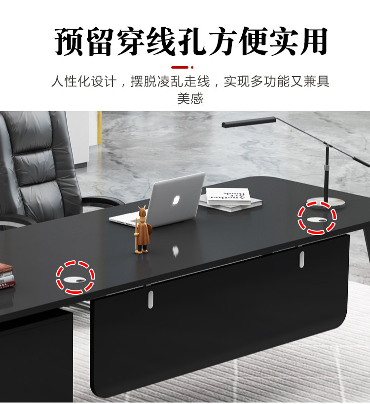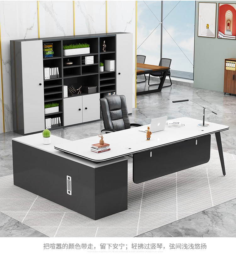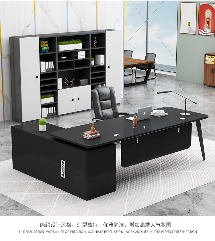fashion office desk black + side cabinet 180*80 * 75cm