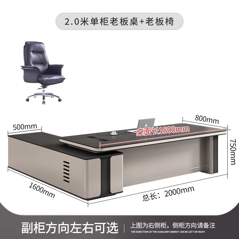 2.0 m single cabinet boss desk + executive chair