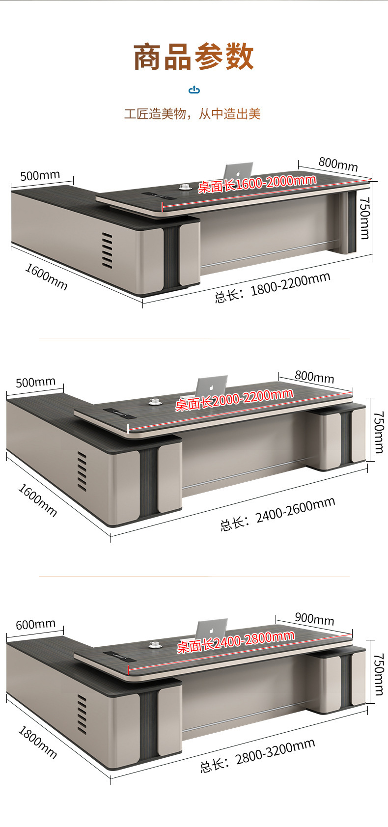 2.2 m single cabinet boss desk