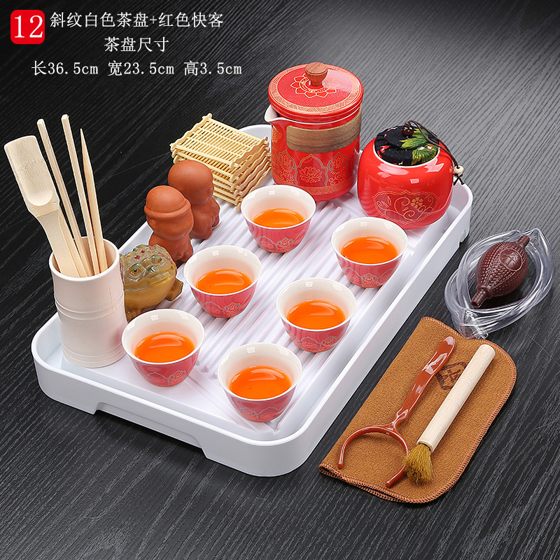 bamboo tea tray twill white + red express tea set