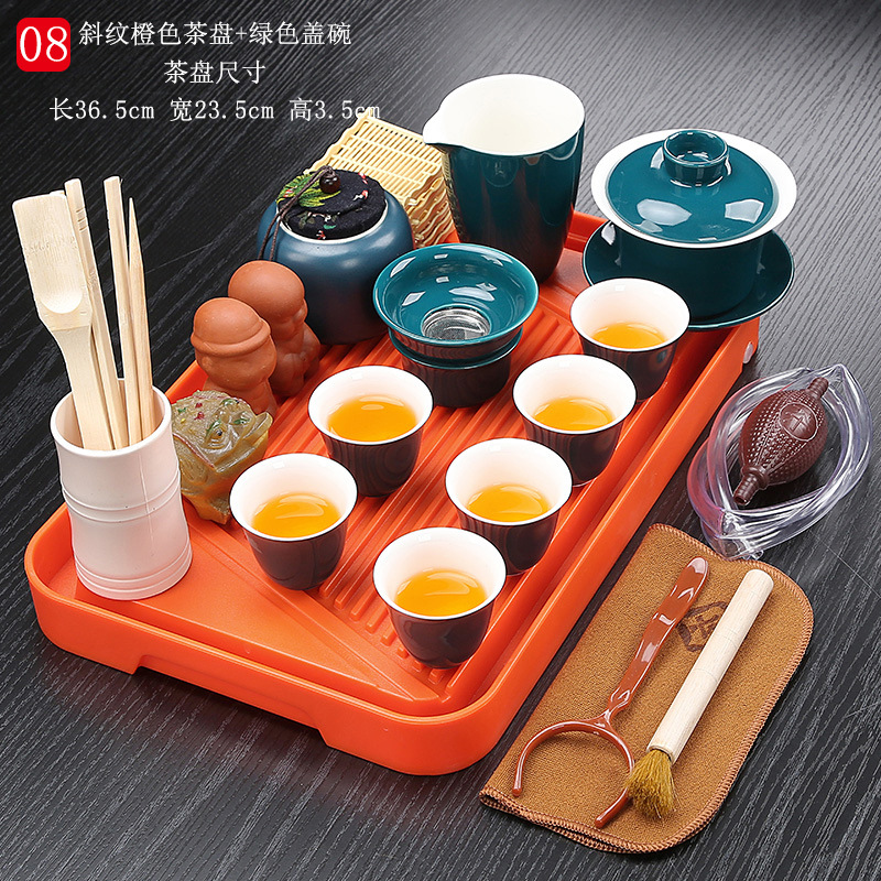bamboo tea tray twill orange + green lidded bowl tea set