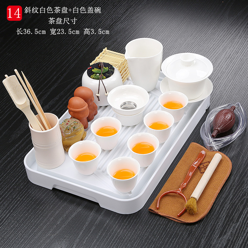 bamboo tea tray twill white + orange lidded bowl tea set