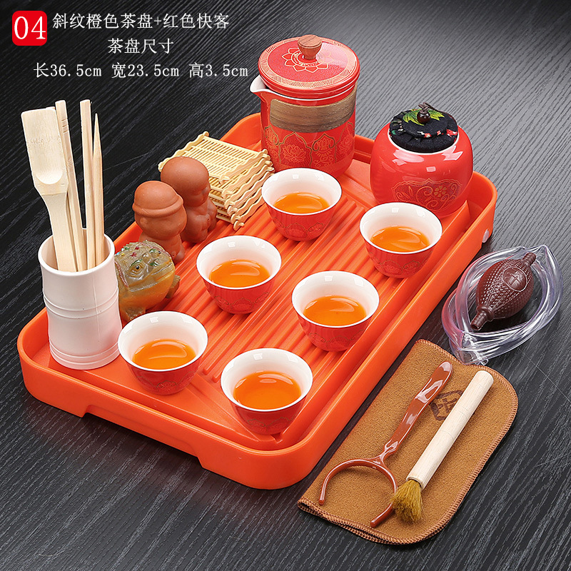 bamboo tea tray twill orange + red express tea set