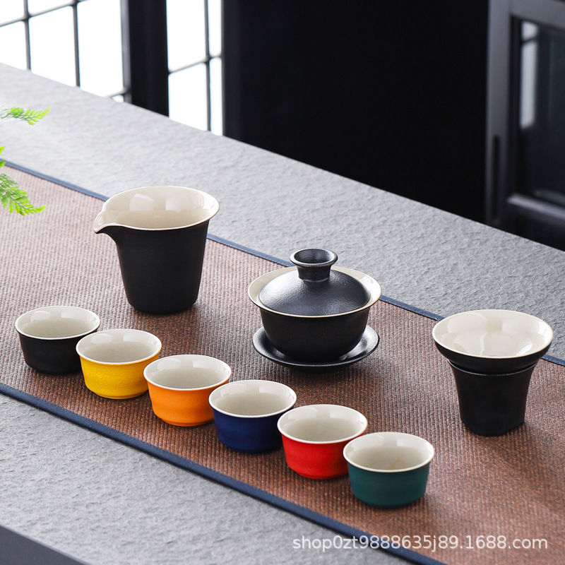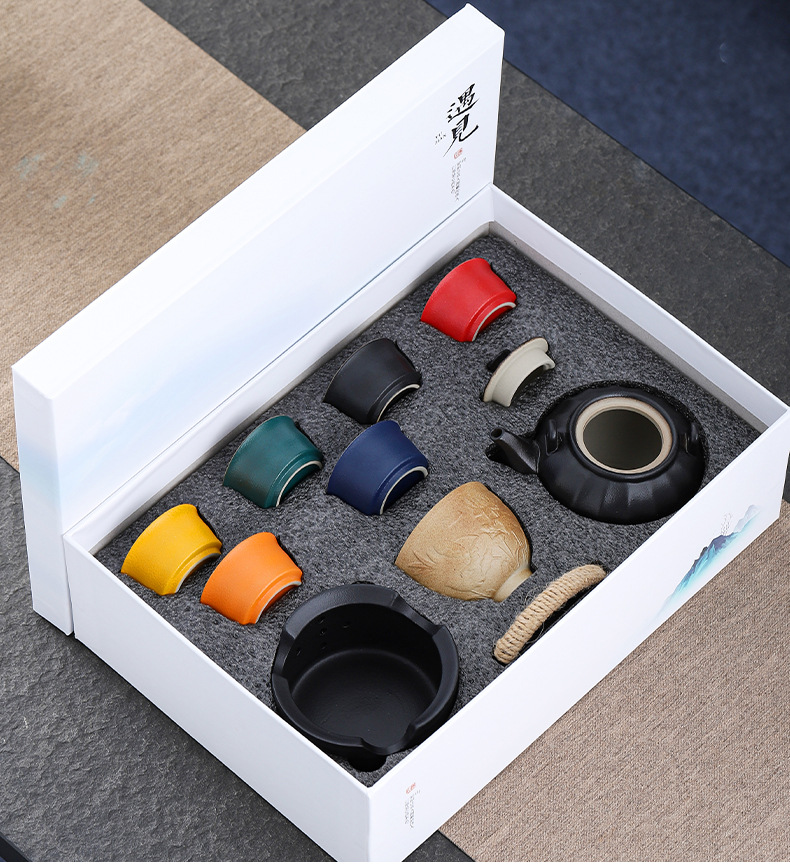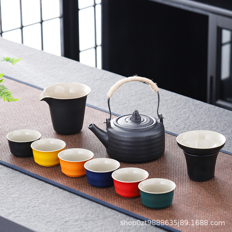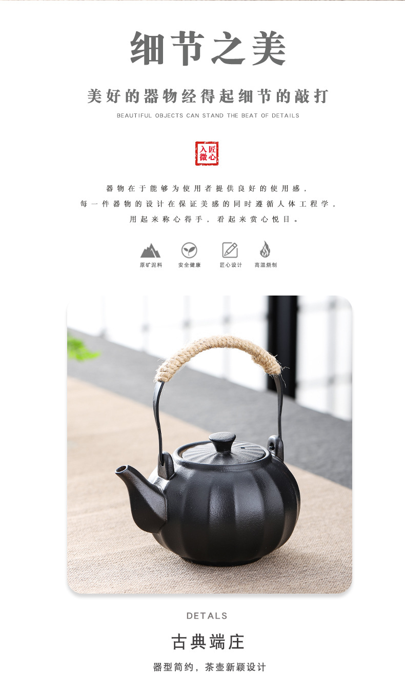 black porcelain particle pot temperature tea set