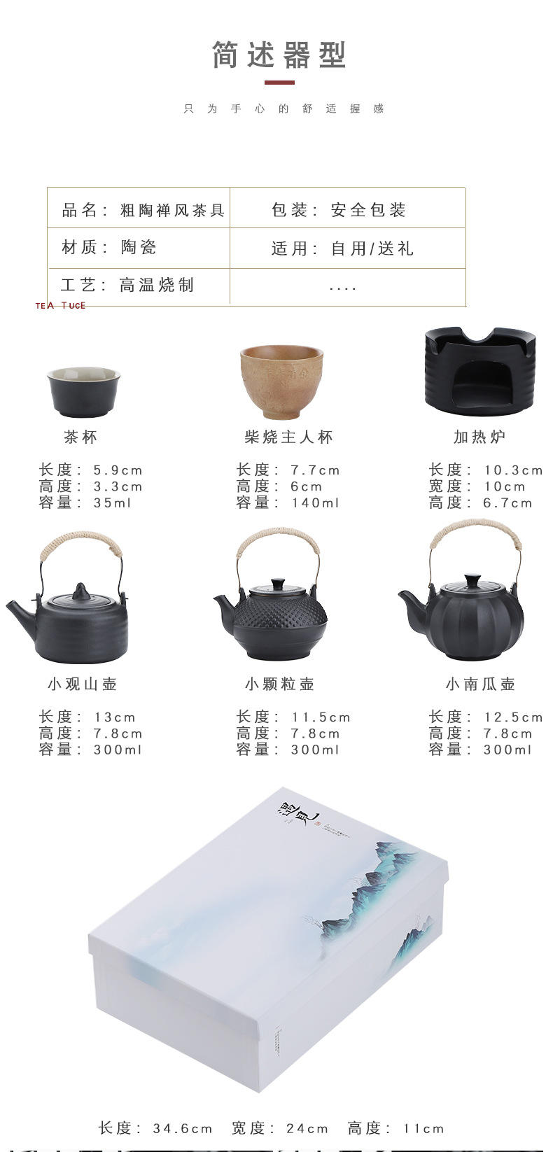 black porcelain guanshan pot temperature tea set