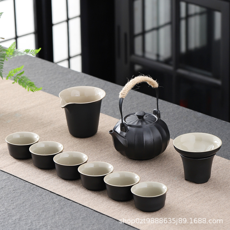 black porcelain pumpkin pot temperature tea set
