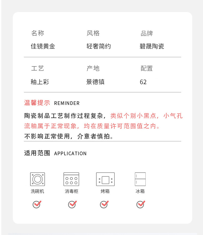62 pieces of good glasses gold golden edge -- color box packaging