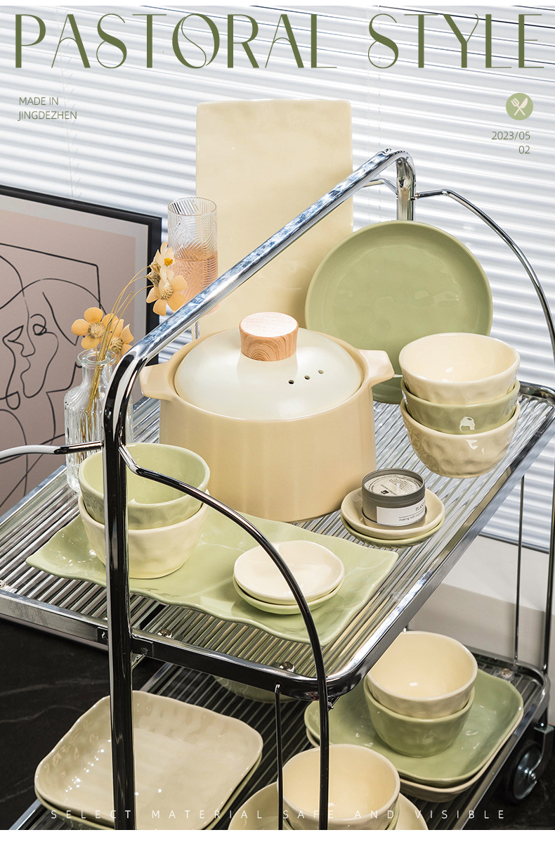 43-piece set with casserole [custard creamy green pairs]]