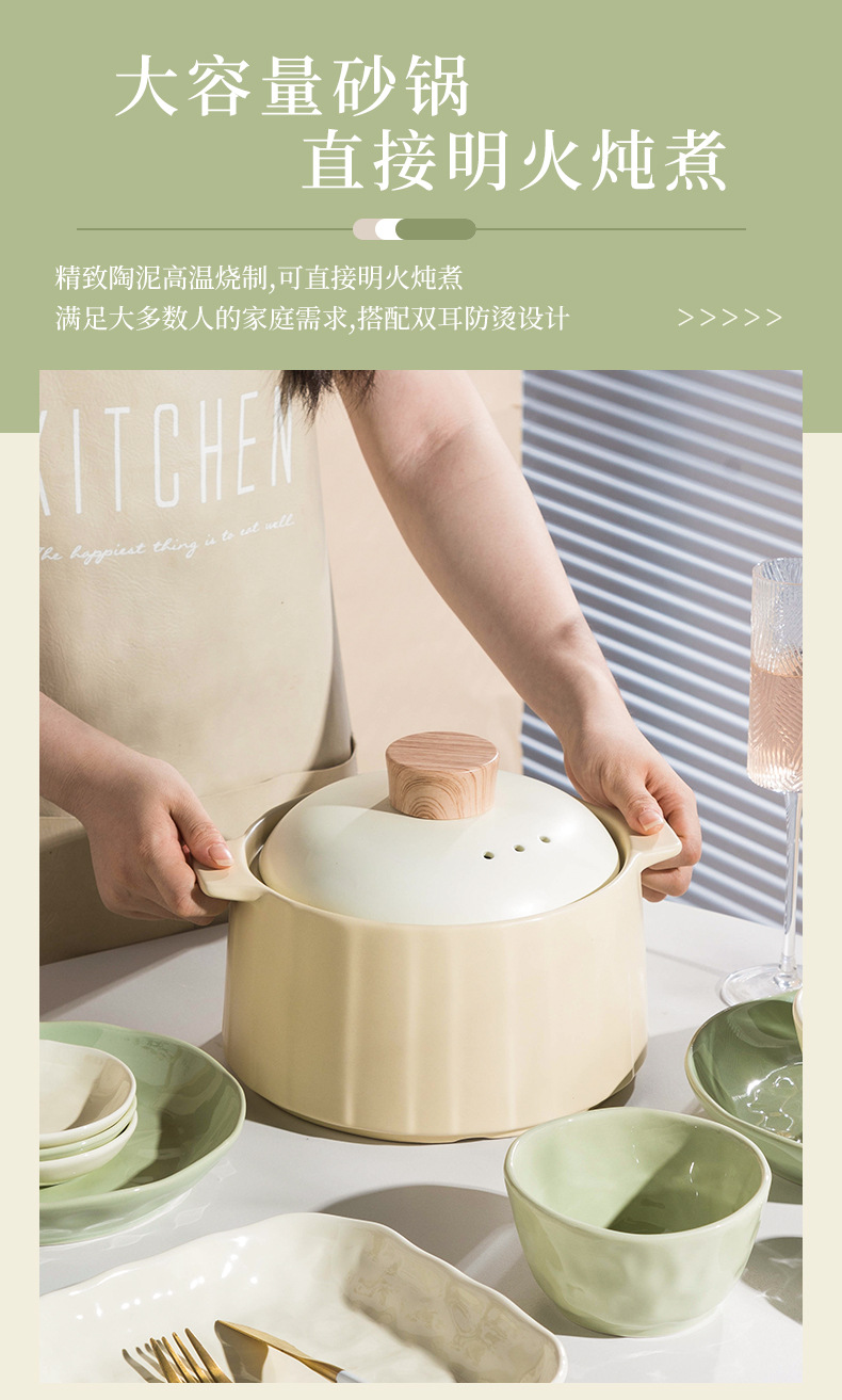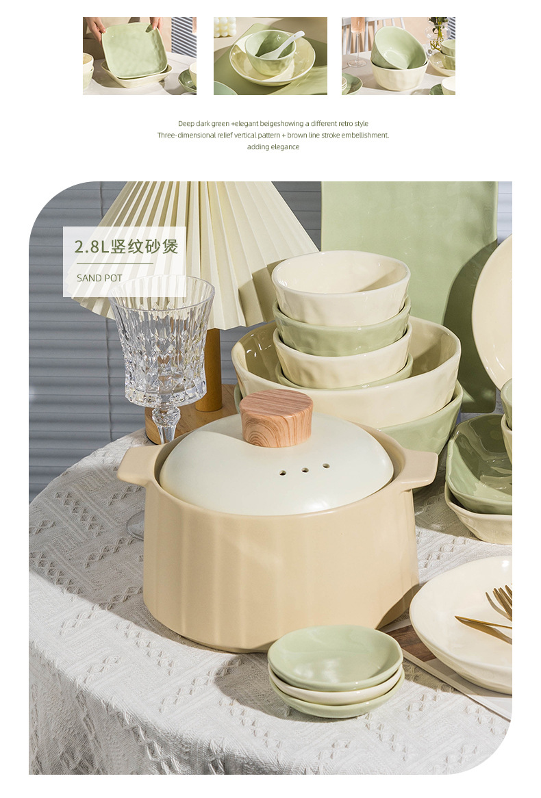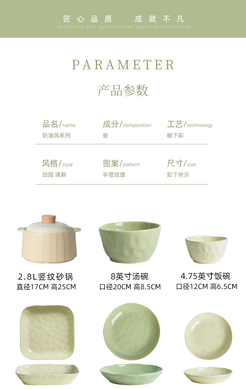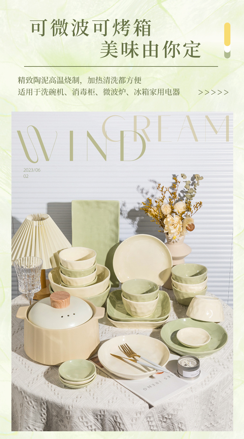 57-piece set with casserole [custard creamy green pairs]]
