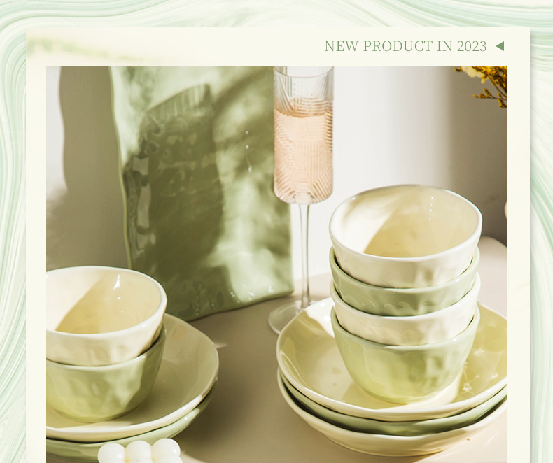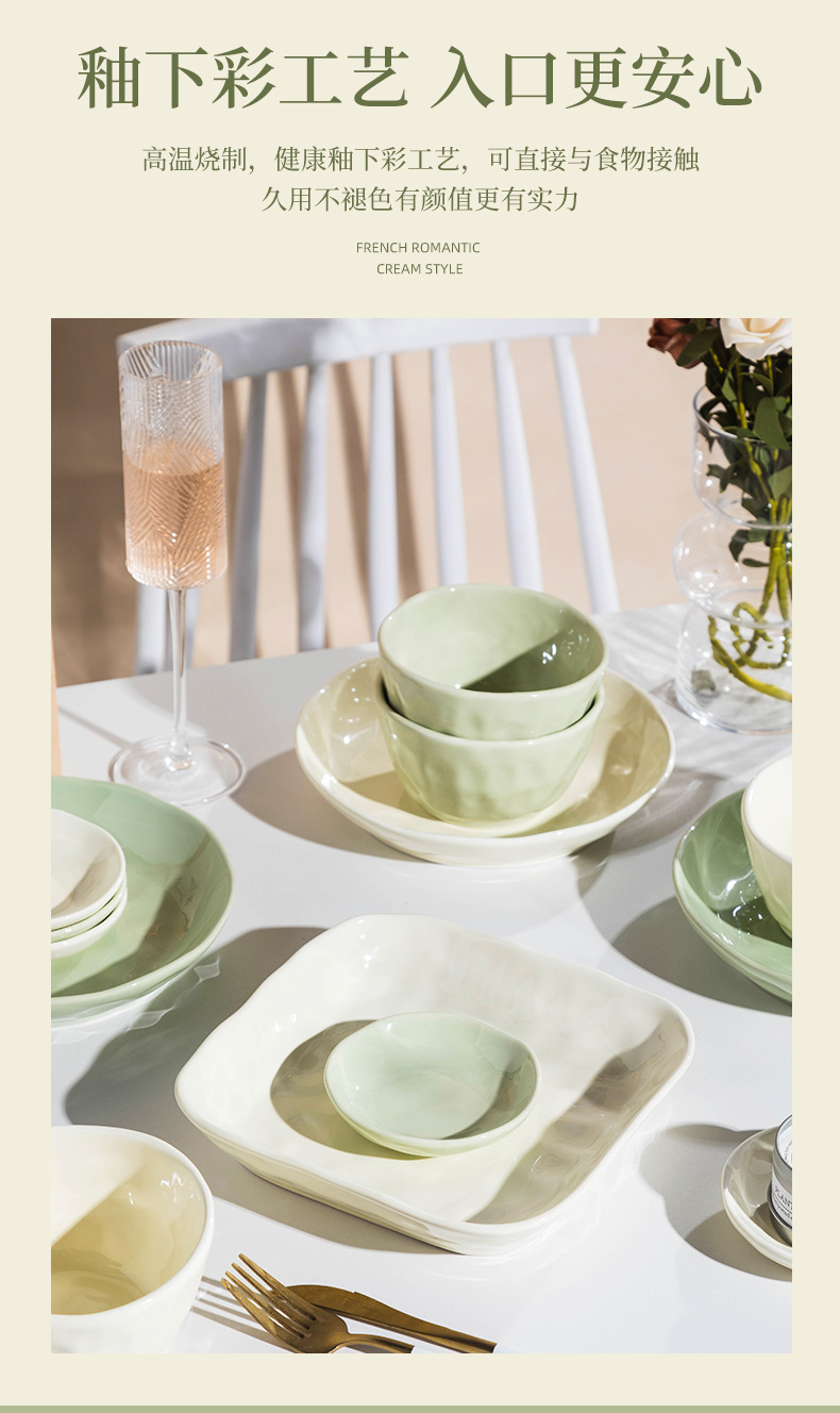 22-piece set with soup bowl [custard creamy green pairs]]