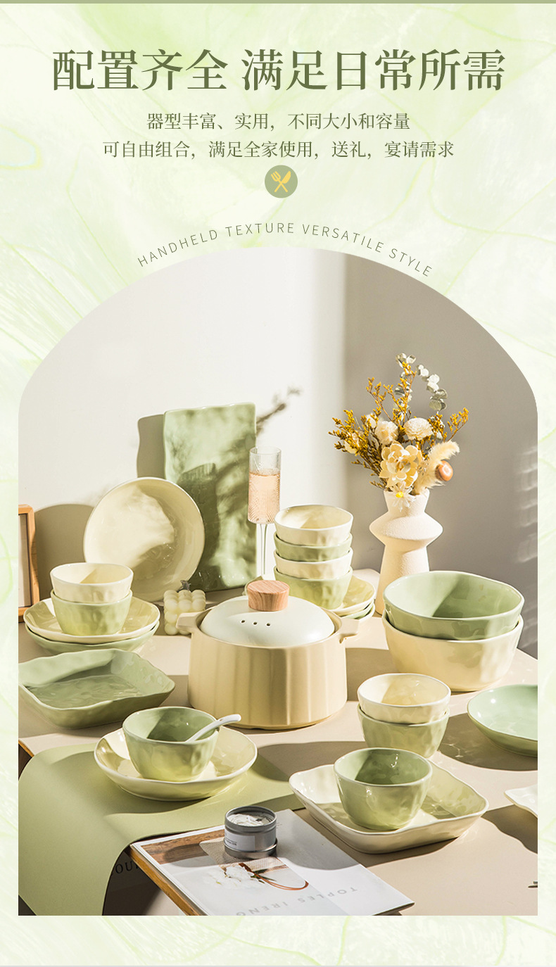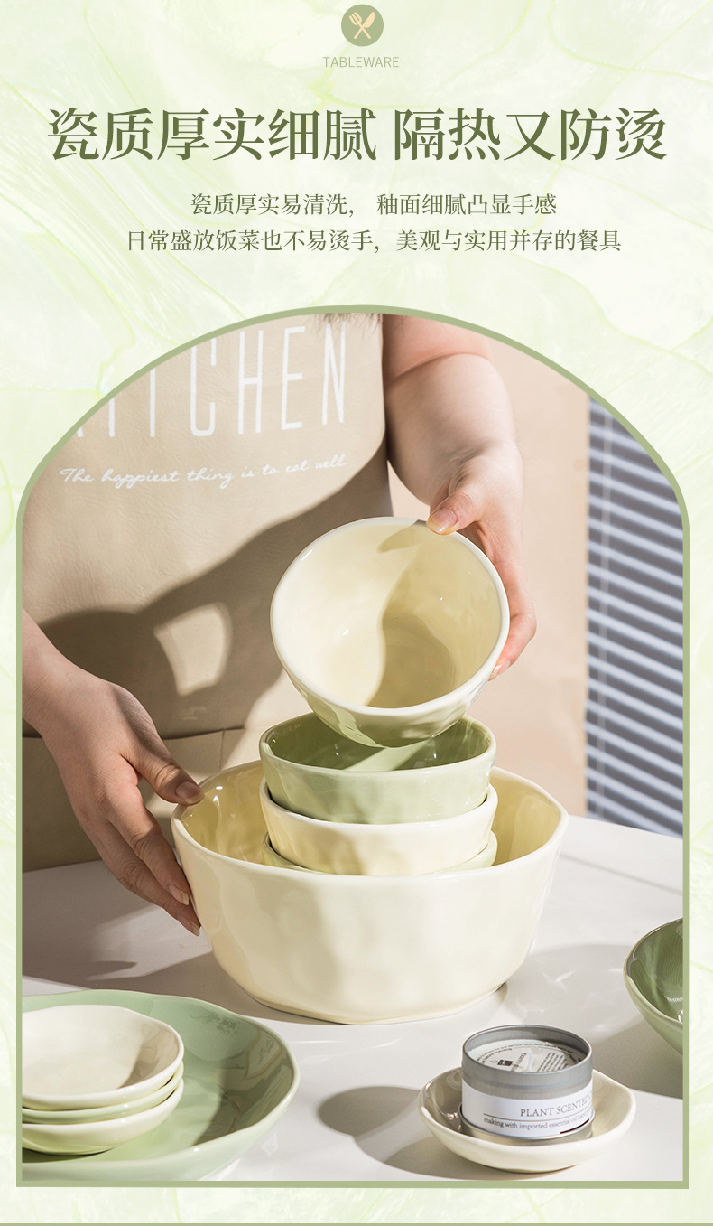 32-piece set with soup bowl [creamy green]]