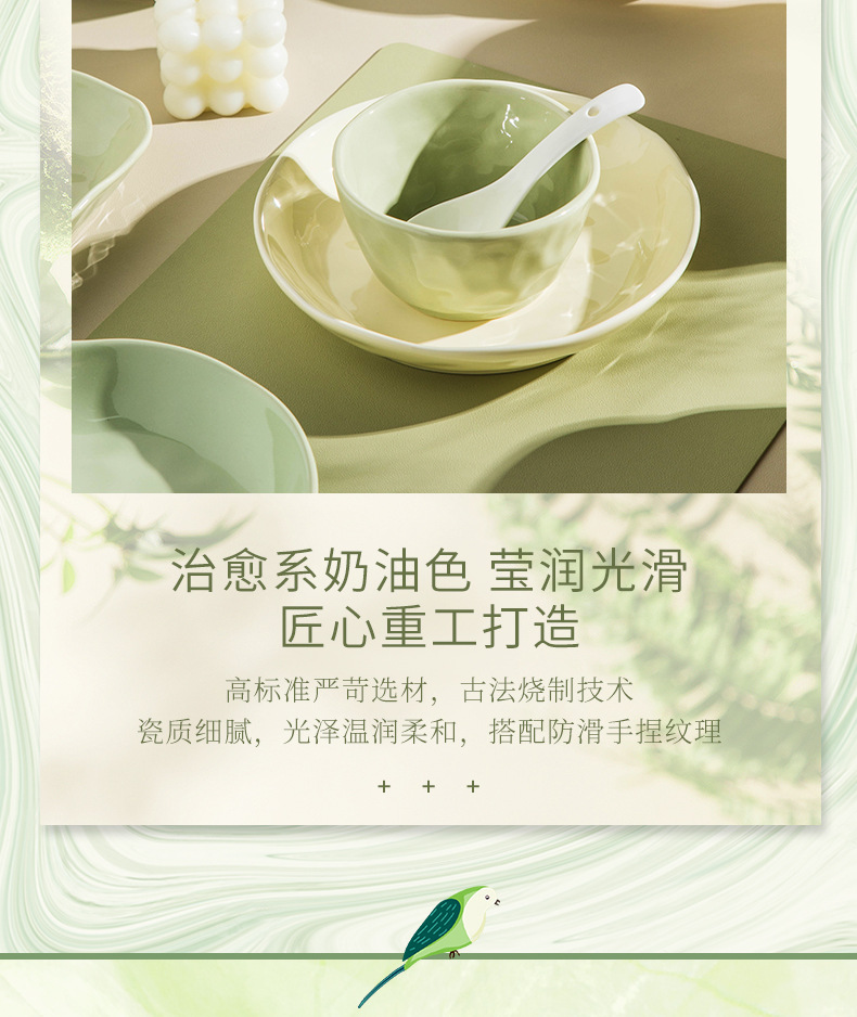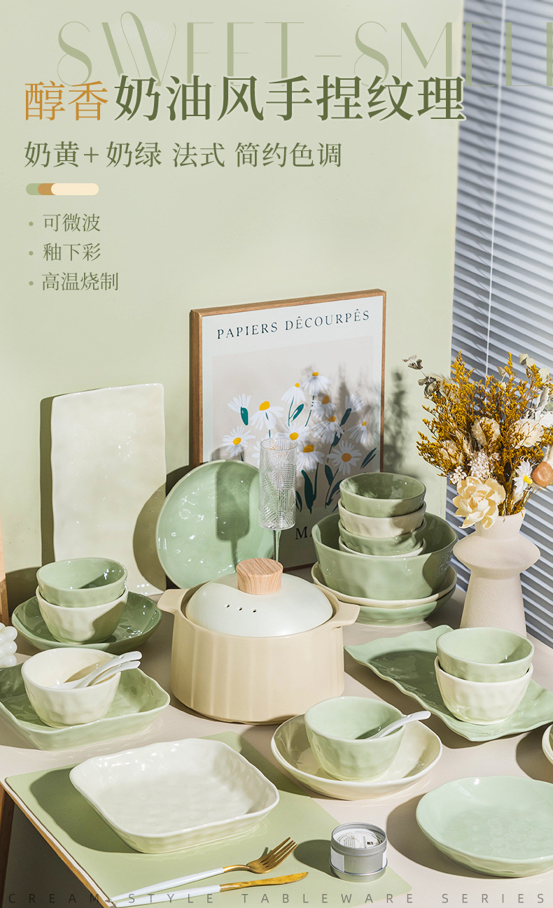 57-piece set with soup bowl [custard creamy green pairs]]
