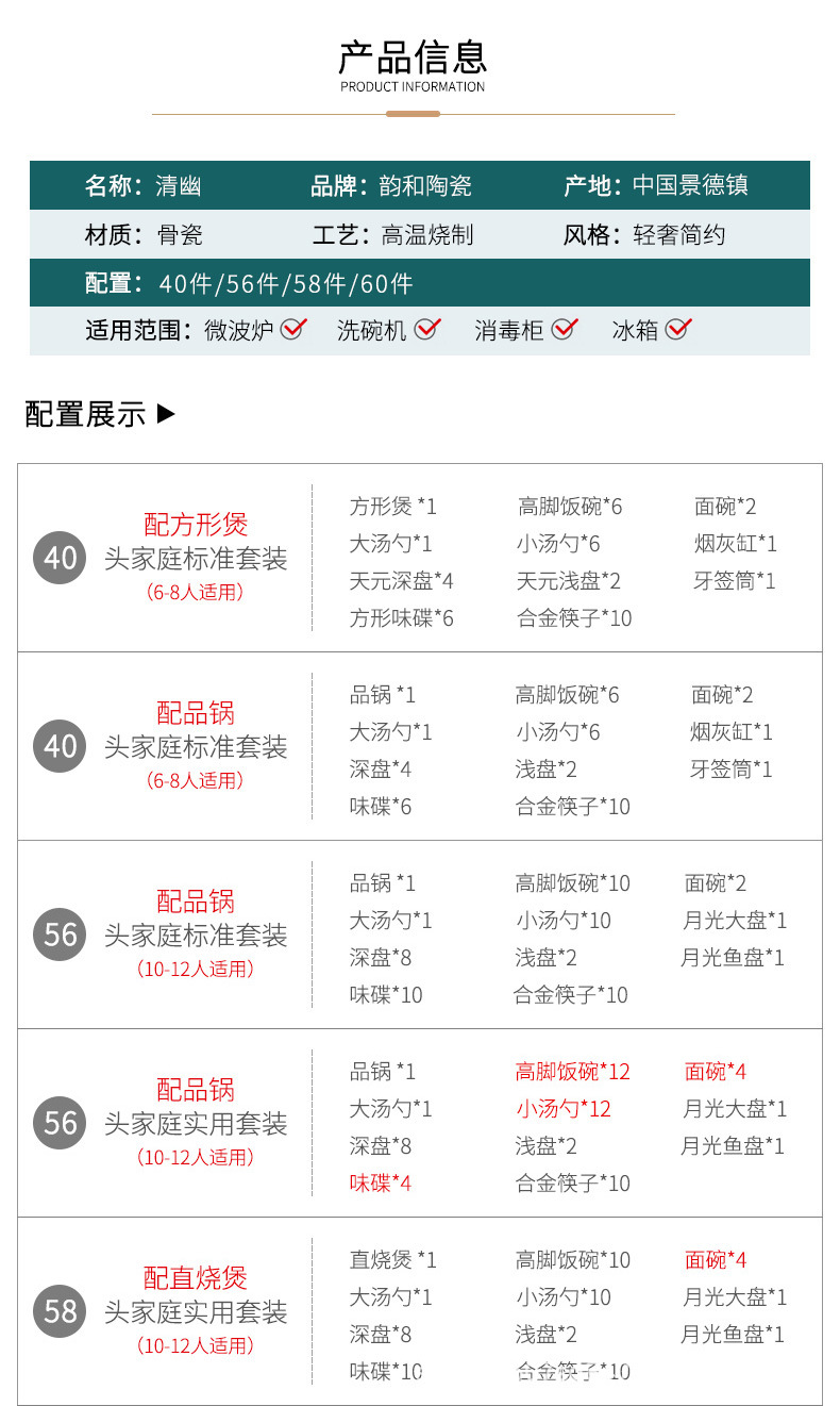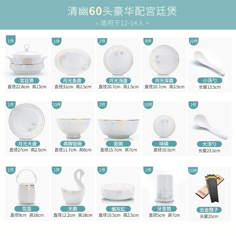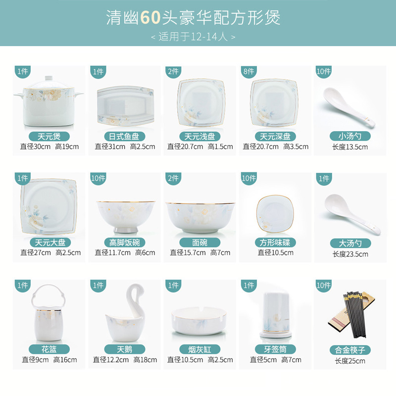 qingyour 60-head luxury formula-shaped pot microwaveable dishwasher