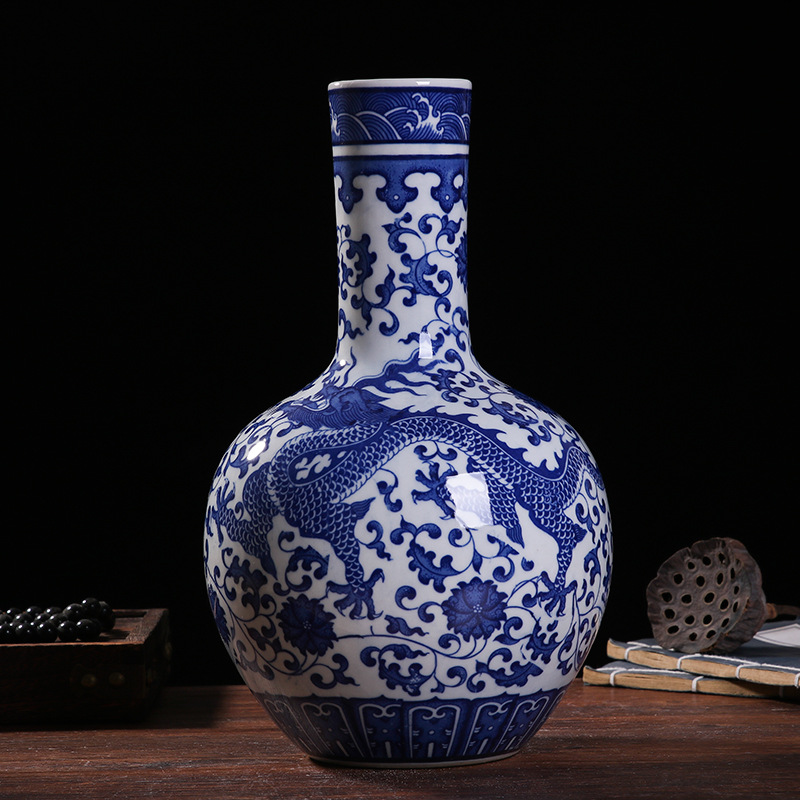 blue and white dragon pattern celestial globe vase (32cm)