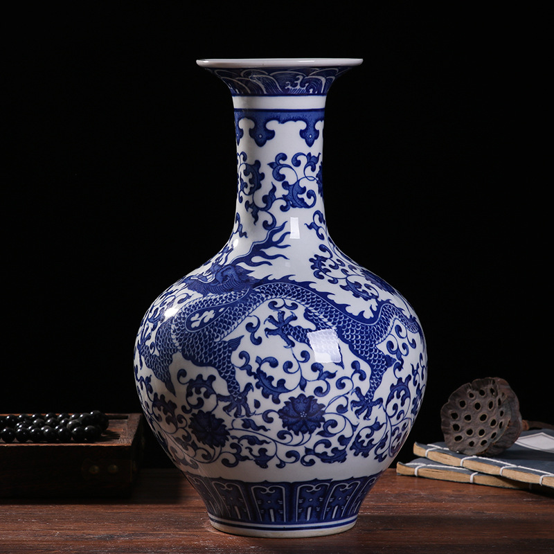 blue and white dragon pattern decorating vase (33cm)