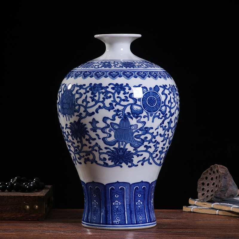blue and white eight-treasure pattern plum vase (33cm)