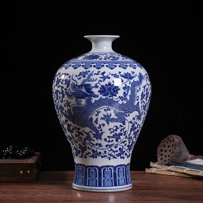 blue and white dragon pattern plum vase (30cm)