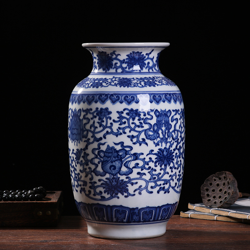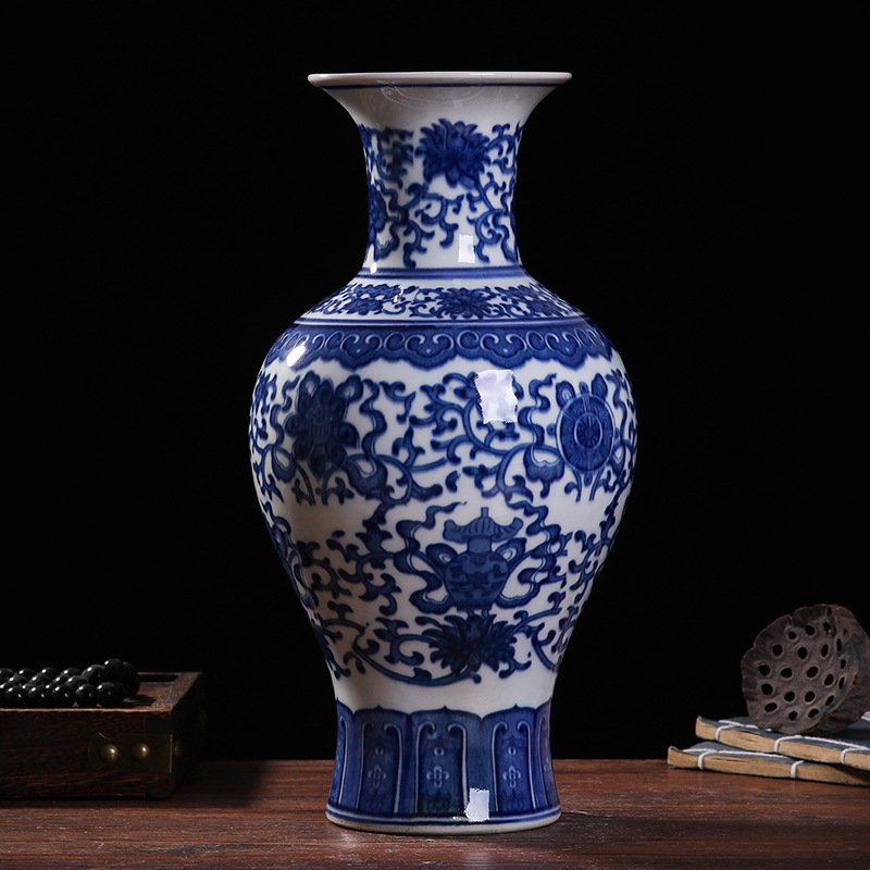 blue and white interlock branch lotus decorating vase (33cm)